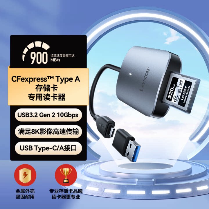 📚 【自营】雷克沙Lexar雷克沙USB 3.2高速读卡器CFexpress Type A卡 USB-C/A读卡器 Type-A读卡器 515U
