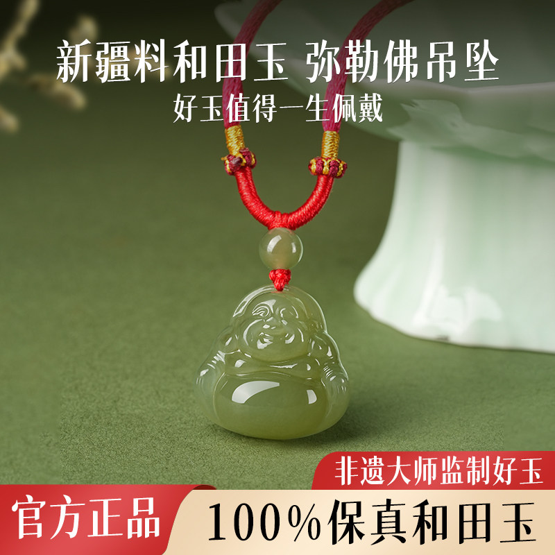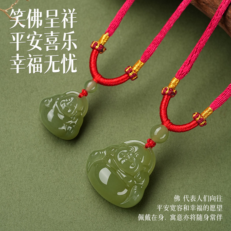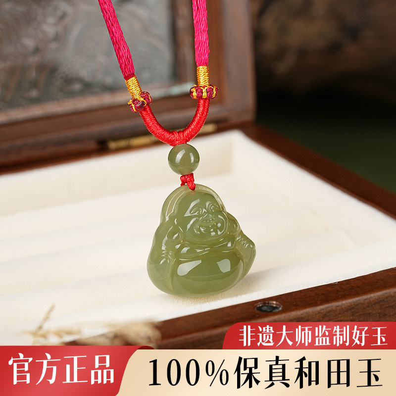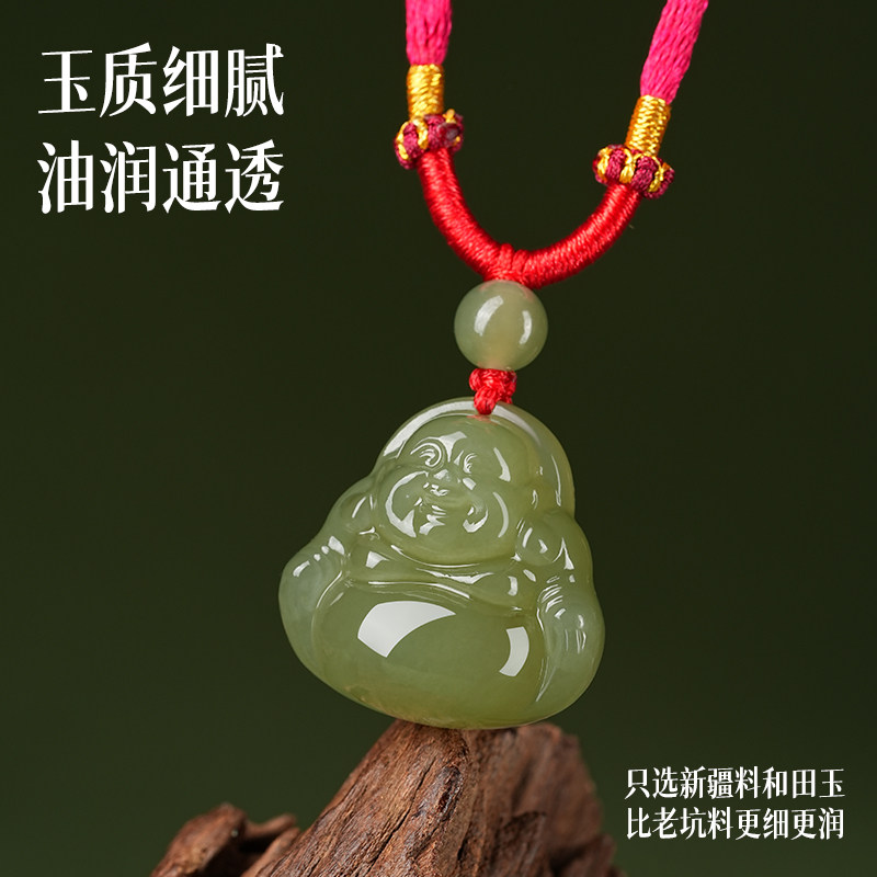 📚 天然和田玉弥勒佛吊坠青玉佛公平安宝宝佛儿童男女观音红绳项链