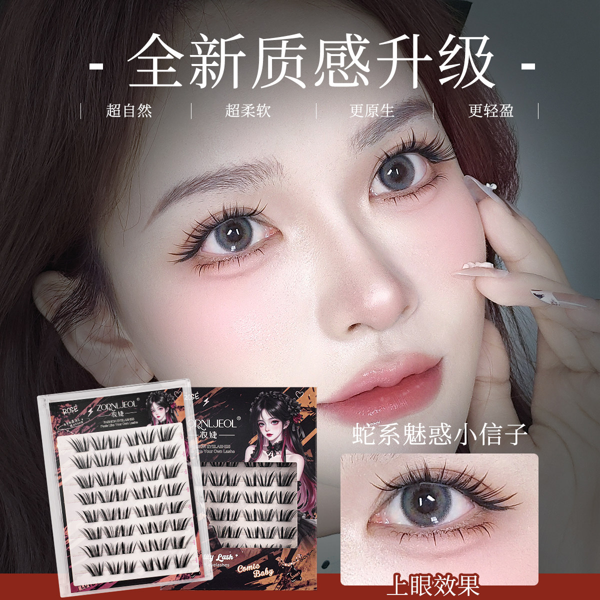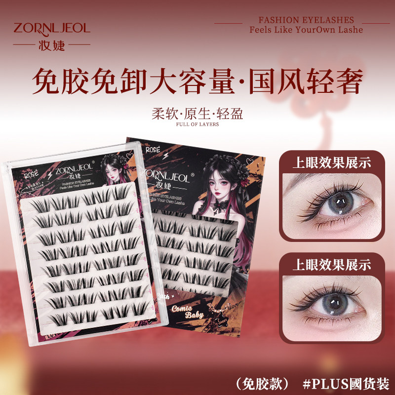 📚 妆婕免胶蛇系小信子假睫毛薄片浓密仿真漫画芭比分段单簇眼睫毛