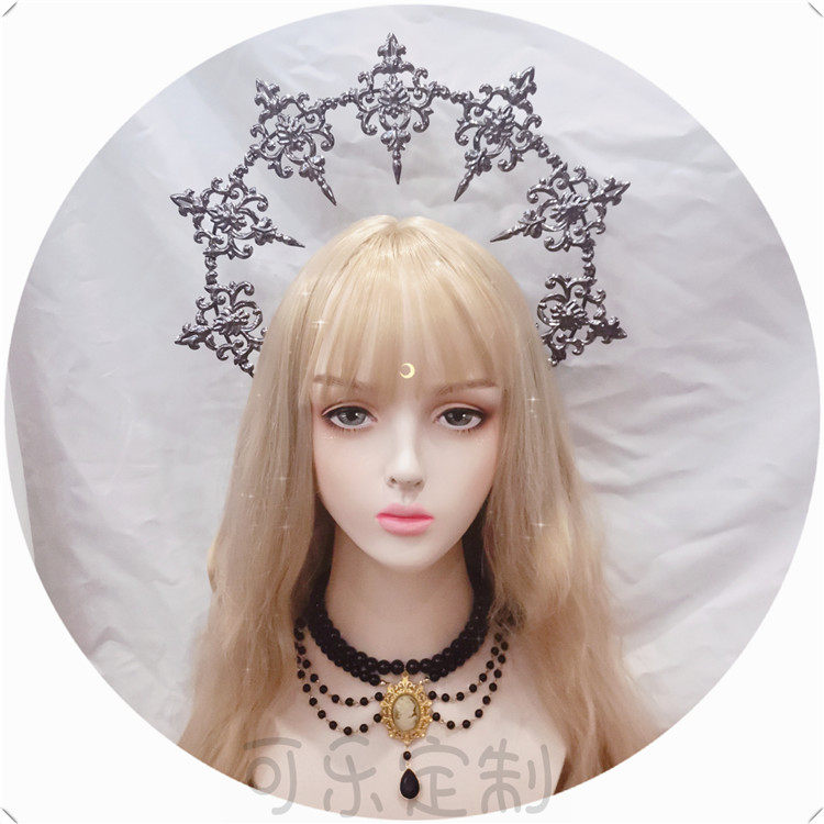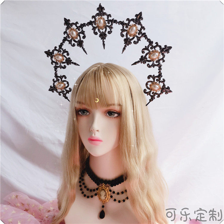 📚 Lolita洛丽塔圣母光环头饰发饰教皇华丽黑色头冠暗黑哥拍照走秀