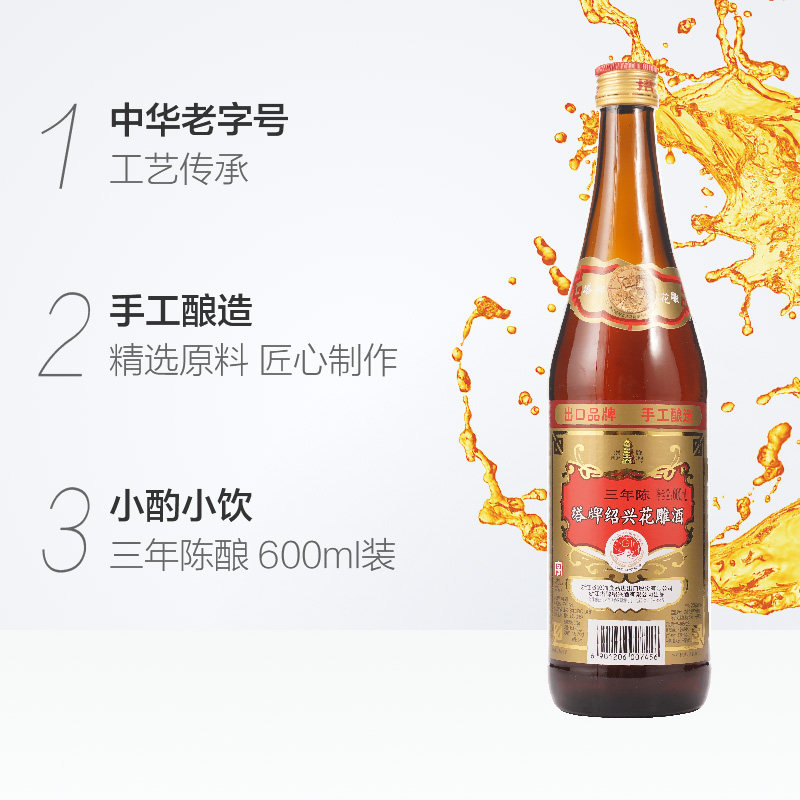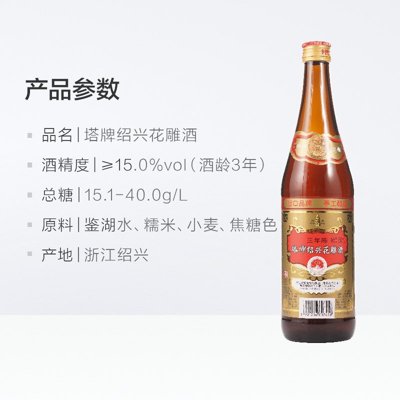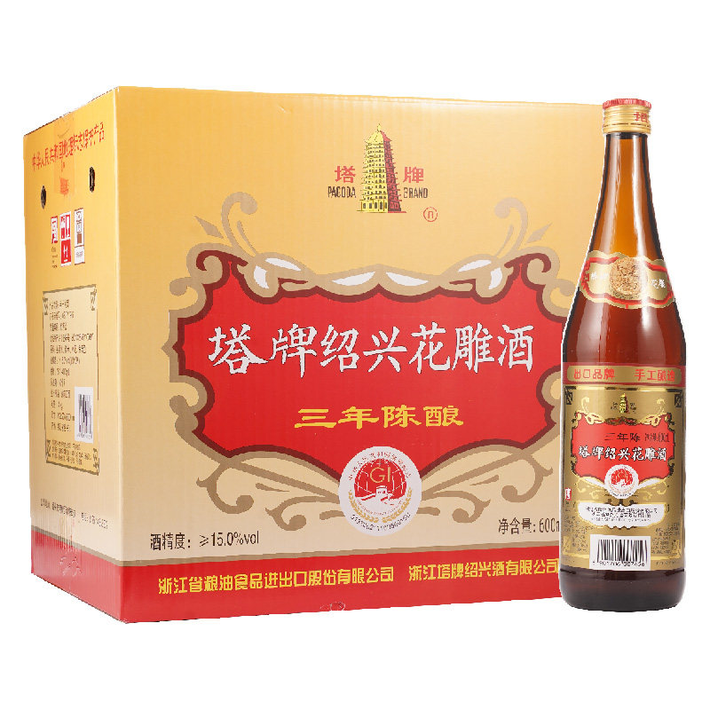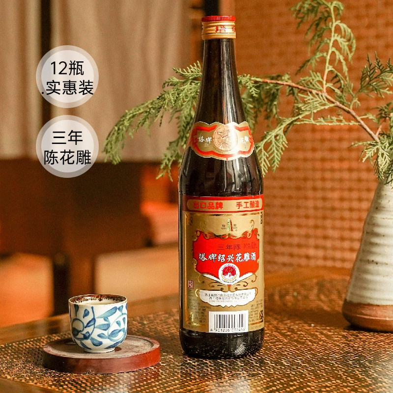 📚 塔牌绍兴黄酒三年花雕酒600ml*12瓶陈酿老酒手工料酒加饭酒整箱装