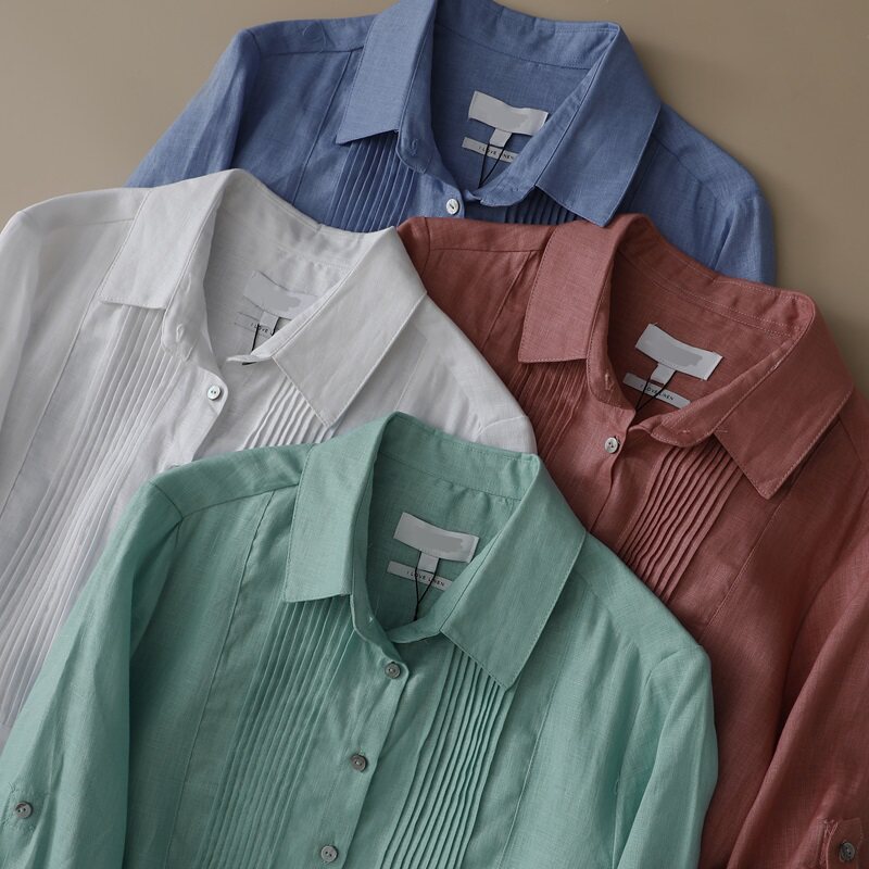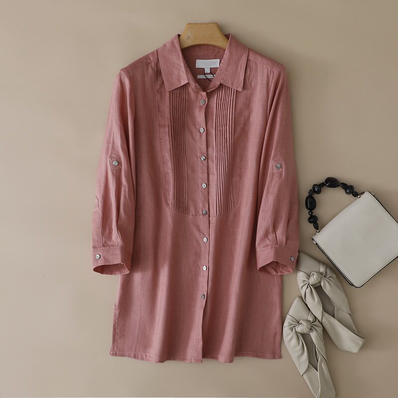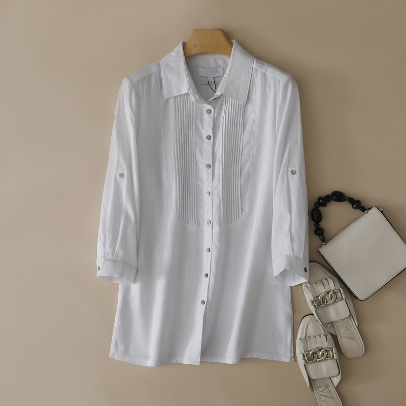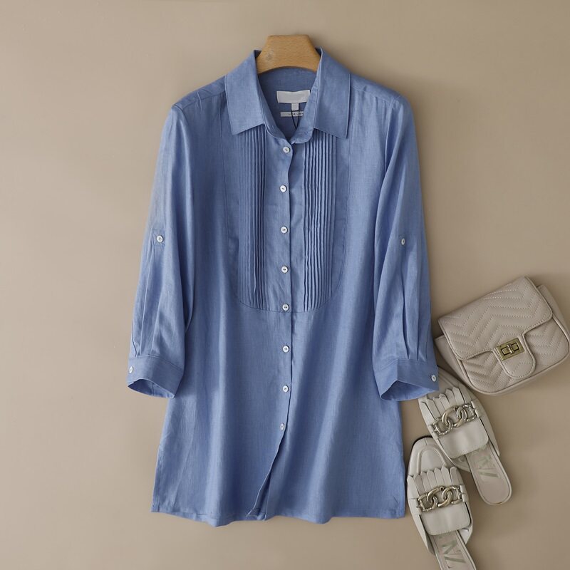 📚 外贸原单 出口德国春夏大码女装翻领纯亚麻两用袖七分袖衬衫上衣