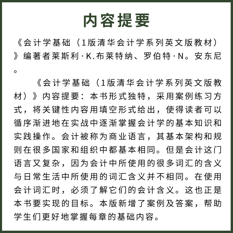 📚 正版会计学基础英文版 第11版 莱斯利布莱特纳 清华大学出版社 基础会计学原理清华会计学系列英文版教材书籍