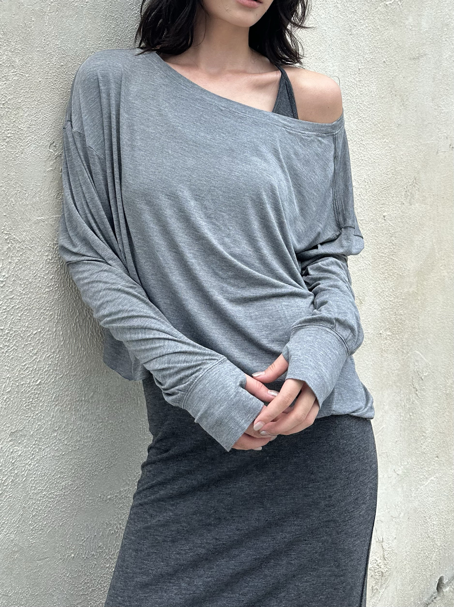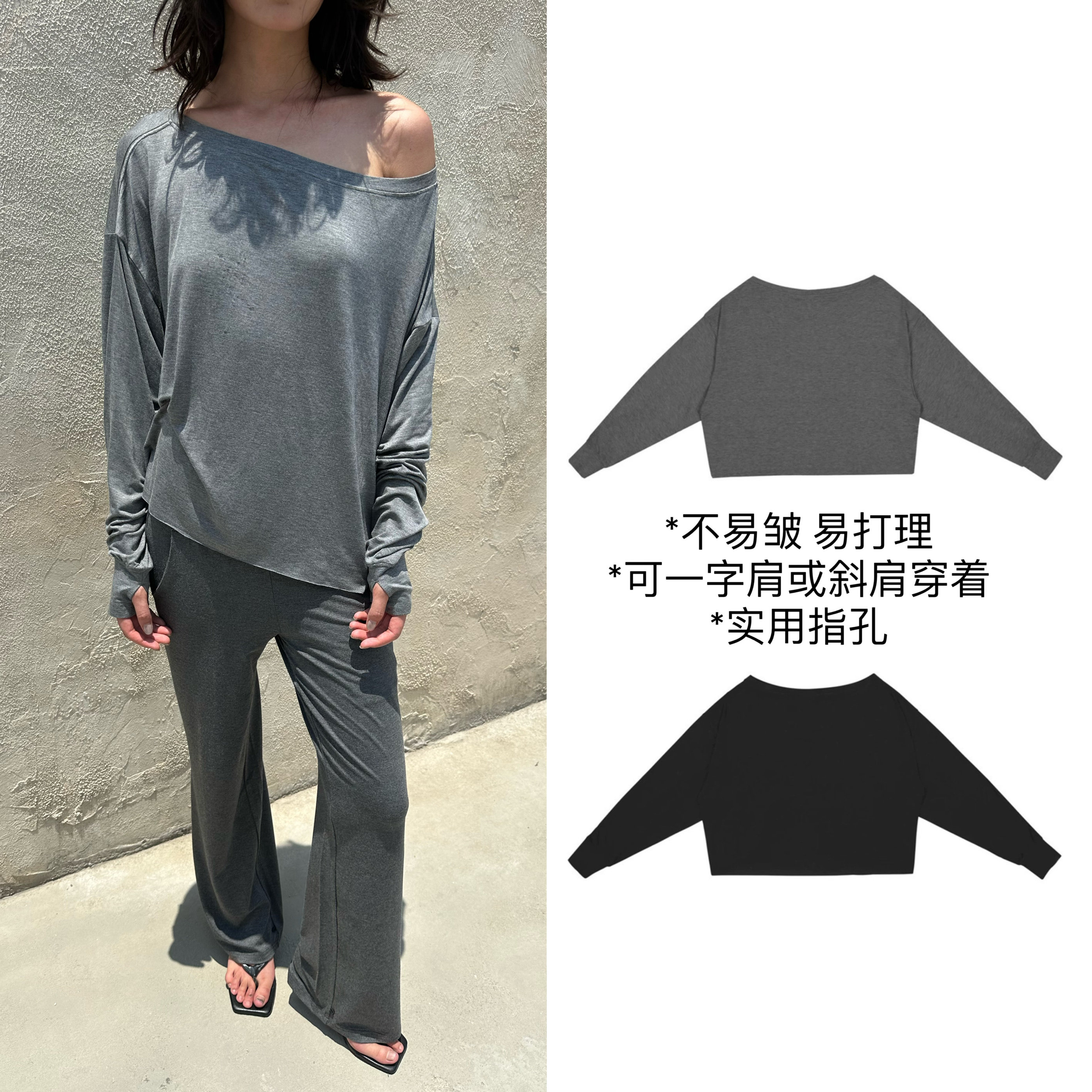 📚 现货 易梦玲同款 午后伸展系列-露肩遮罩轻薄卫衣蝙蝠袖长袖T恤