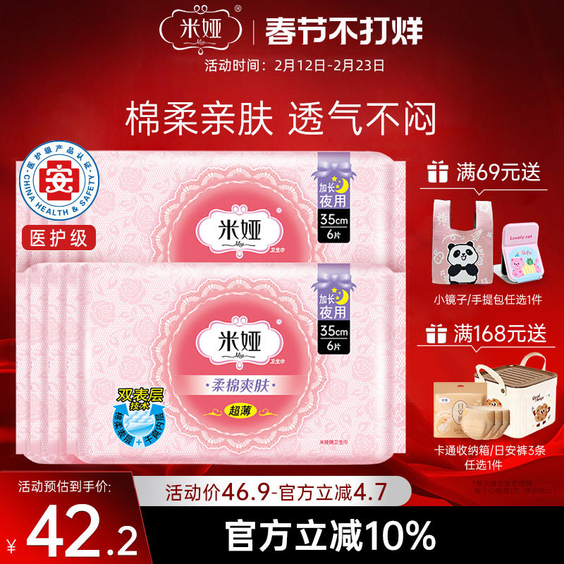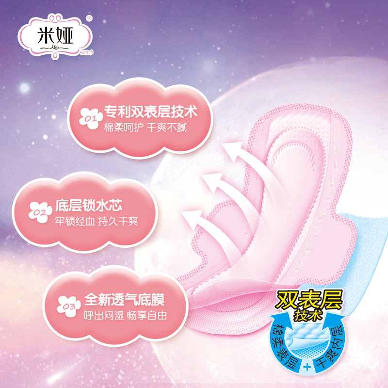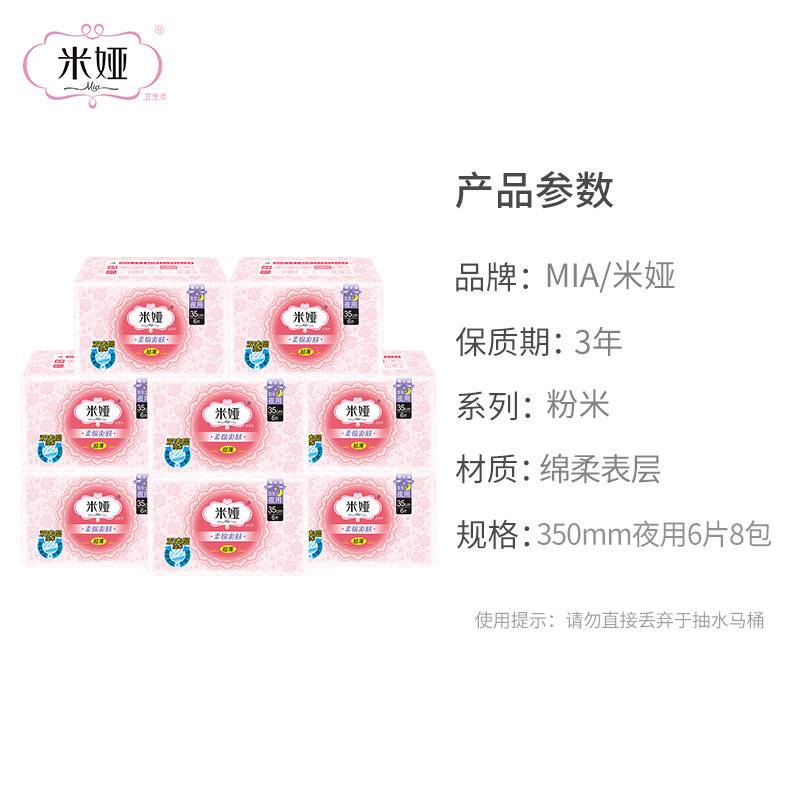 📚 米娅卫生巾夜用350mm粉米干爽透气姨妈巾女组合装官方旗舰店正品