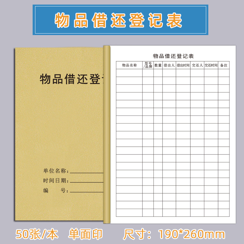 📚 物品借还登记表物品借出退还时间明细表商品进货出货通用企业单位物品借还记录本物品借还记录簿物品登记本