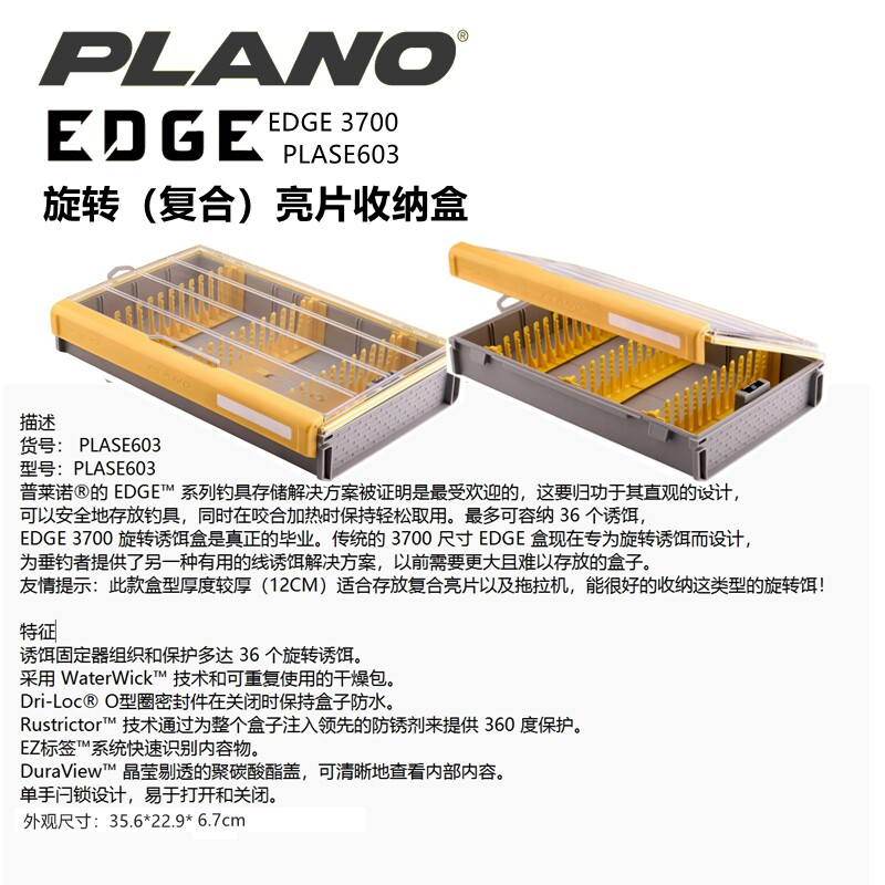 📚 美国PLANO饵盒EDGE3700 PLASE603旋转亮片复合路亚盒防水收纳盒