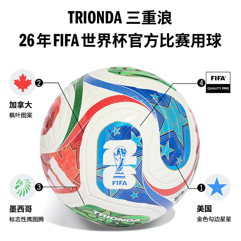 🔍 嘿,小伙伴们!今天我要跟大家分享一款超级特别的足球——阿迪达斯2026美加墨世界杯高端FIFA认证官方用球5号!🔥