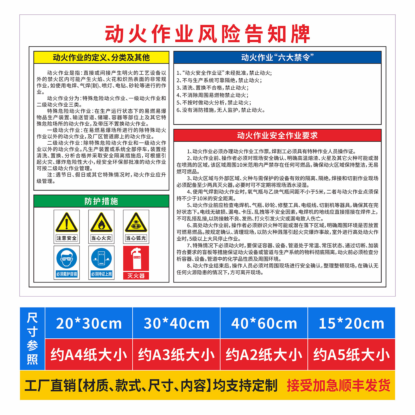 📚 固定动火区标识牌动火作业安全风险告知牌未经授权禁止动火焊接作业提示牌当心弧光必须戴护目镜面罩指示贴纸
