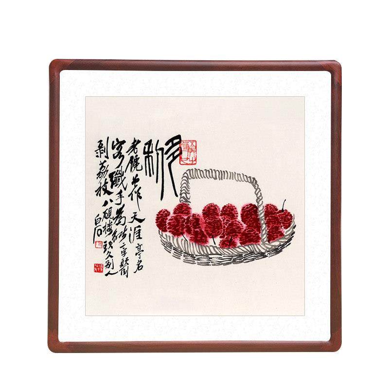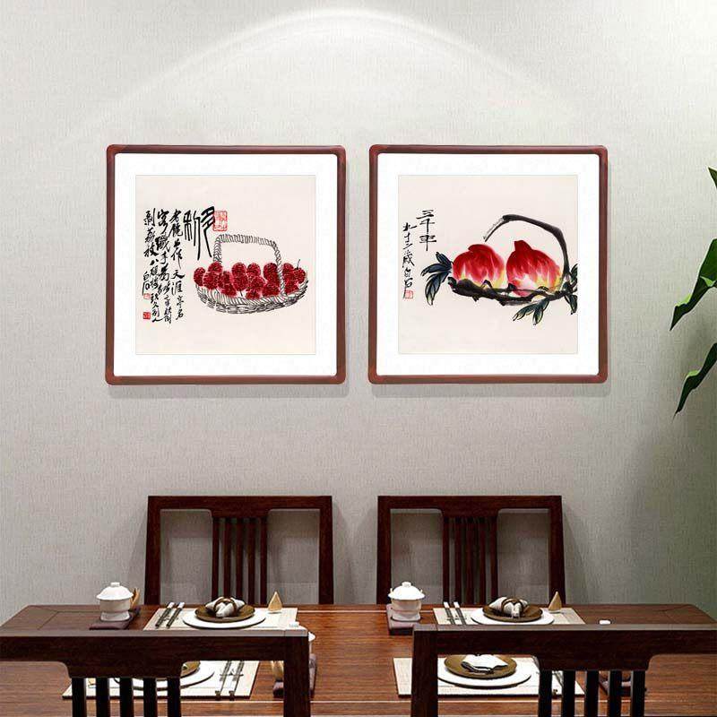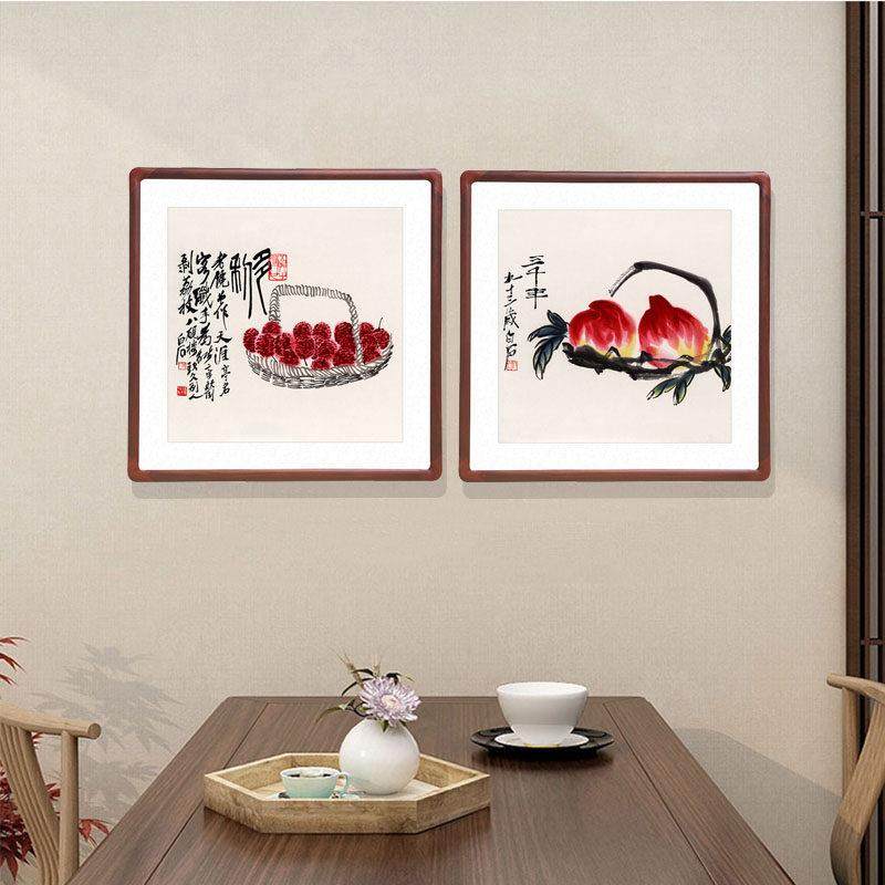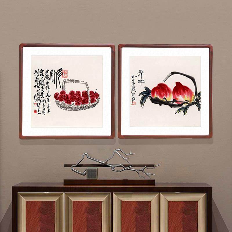 📚 齐白石益寿延年方形荔枝寿桃挂画客厅玄关装饰画餐厅走廊过道壁画