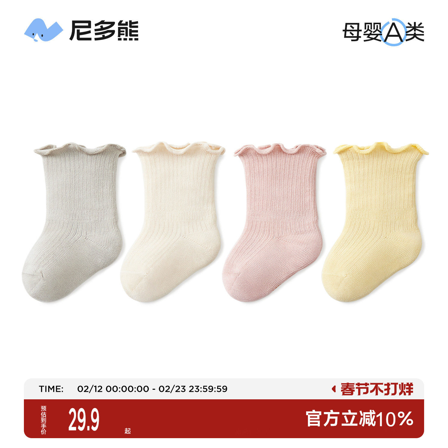 📚 尼多熊新生婴儿袜子秋冬棉袜a类女宝宝中筒袜松口无骨可爱不勒腿