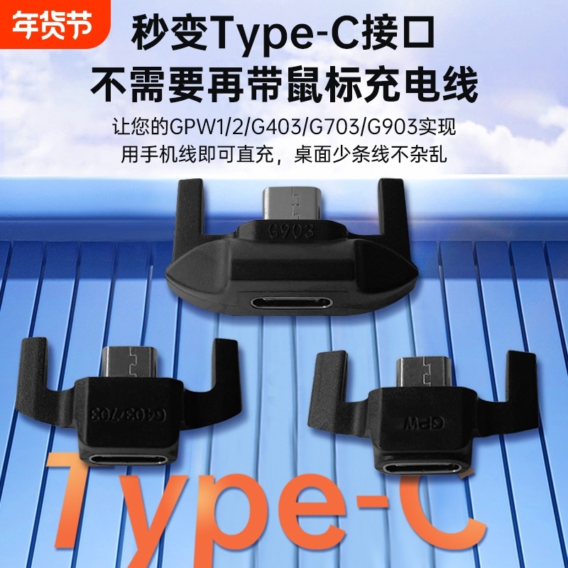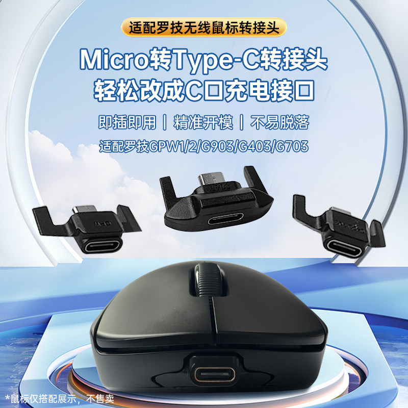 📚 适配罗技鼠标转接头充电器充电线狗屁王GPW1/2/G903/G403/G703/G502/master1/2s 安卓mirco转type-c转接器