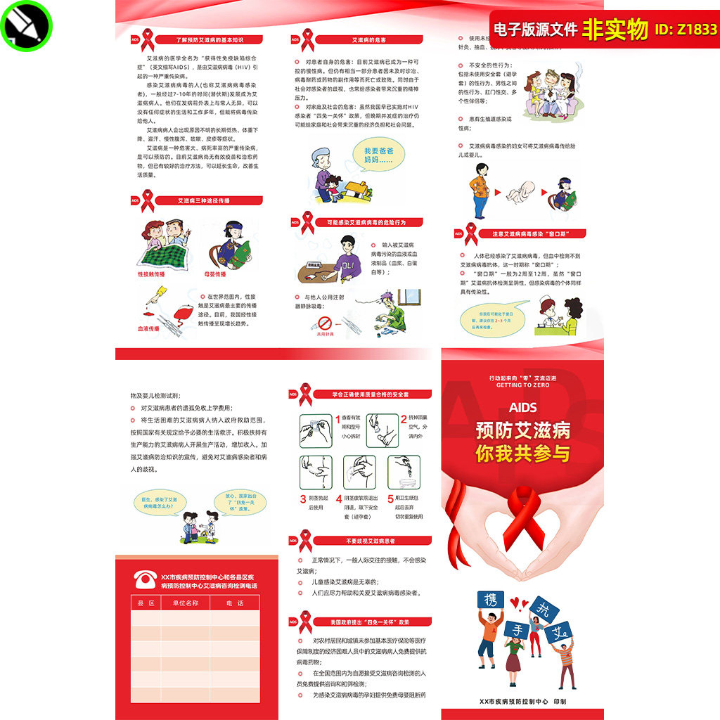 39¥ MF937 SmuyUKr9Hny¥ https://m.tb.cn/h.7AXoMo6 预防艾滋病宣传三折页健康教育宣传手册艾滋病知识手册CDR素材 --------------------- 【原售价】25元 【现售价】20元。