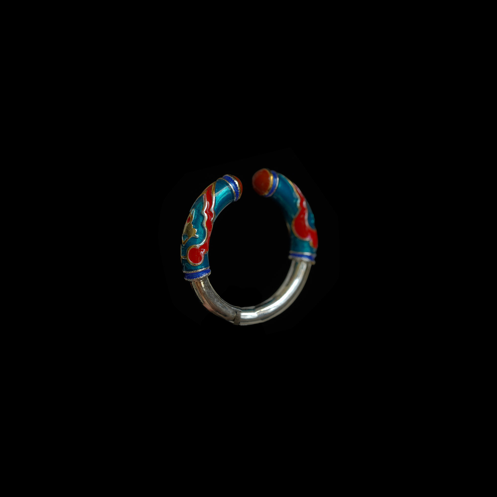 📚 Vintage古着Ruyi Blue Enamel Open Ring复古银色戒指