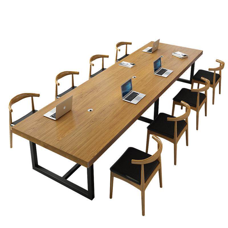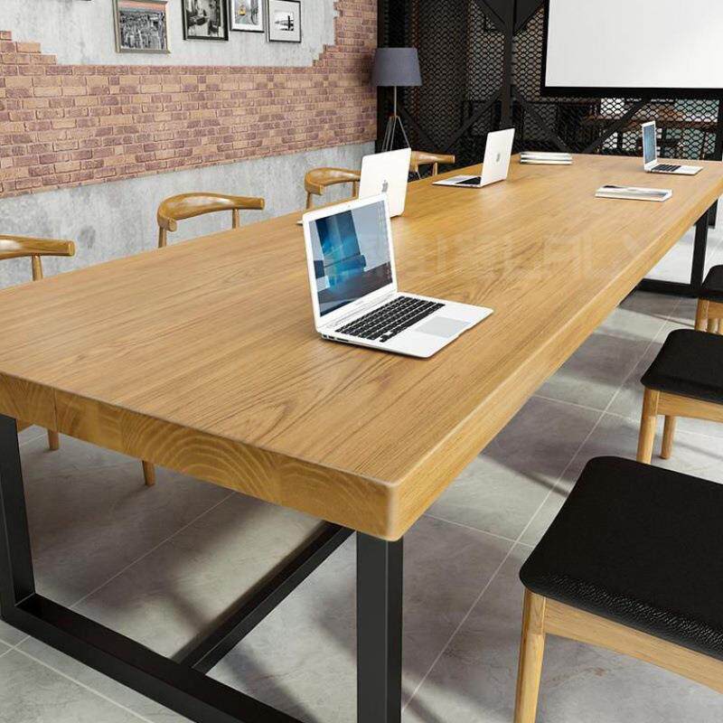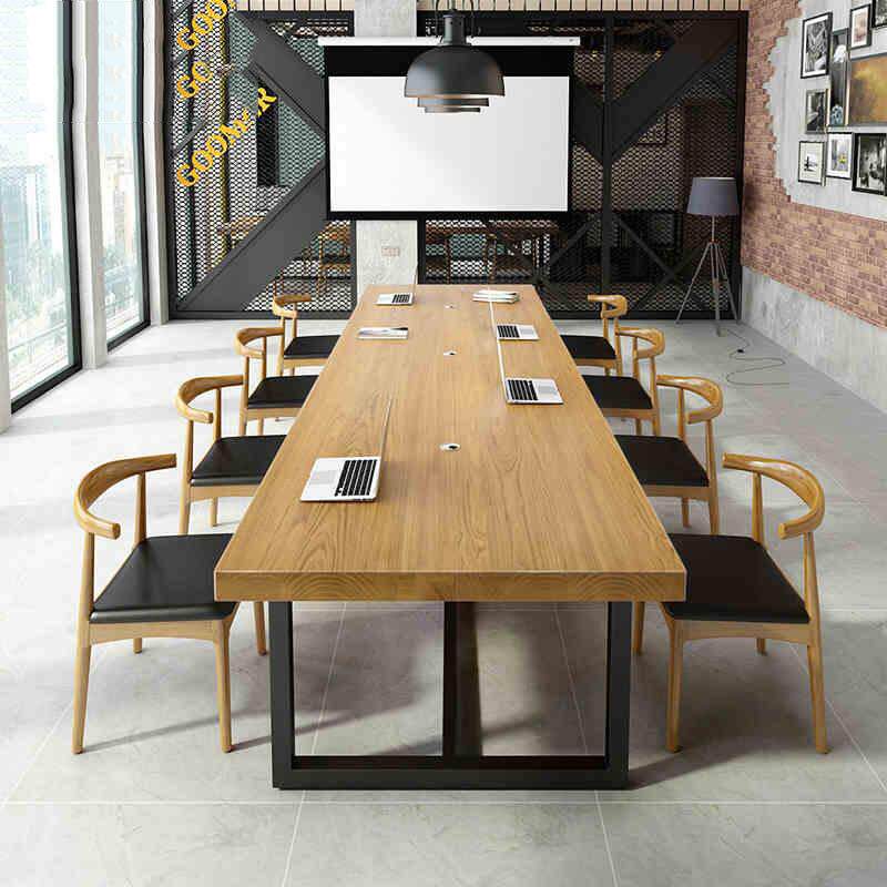 📚 办公室长条大板实木办公桌简约现代职员桌工作电脑桌铁艺会议桌椅