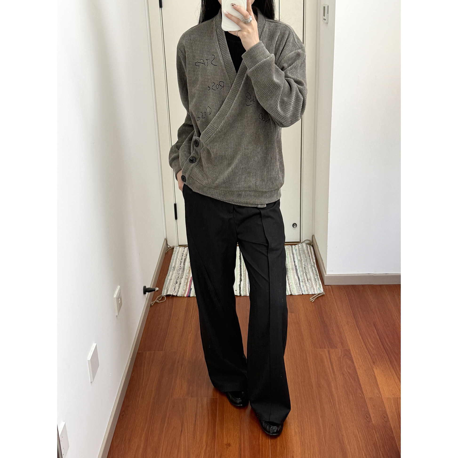 📚 TZ killer V-neckHoodie条纹刺绣V领卫衣 层次感拼接宽松长袖上衣