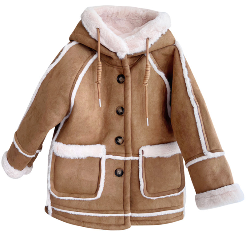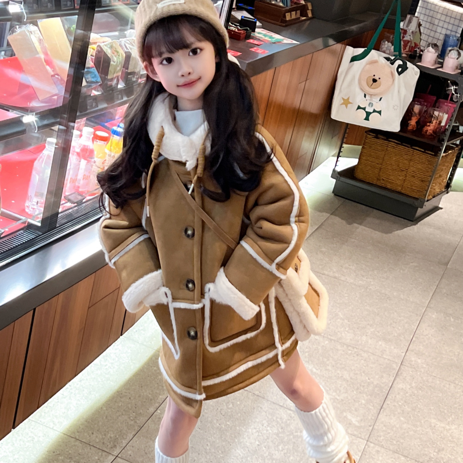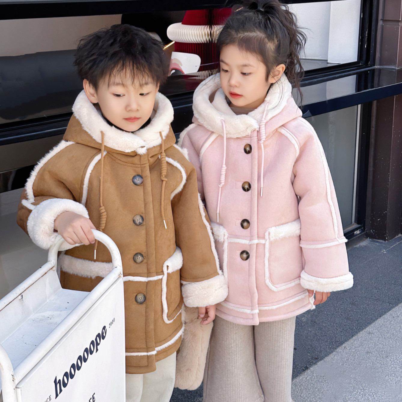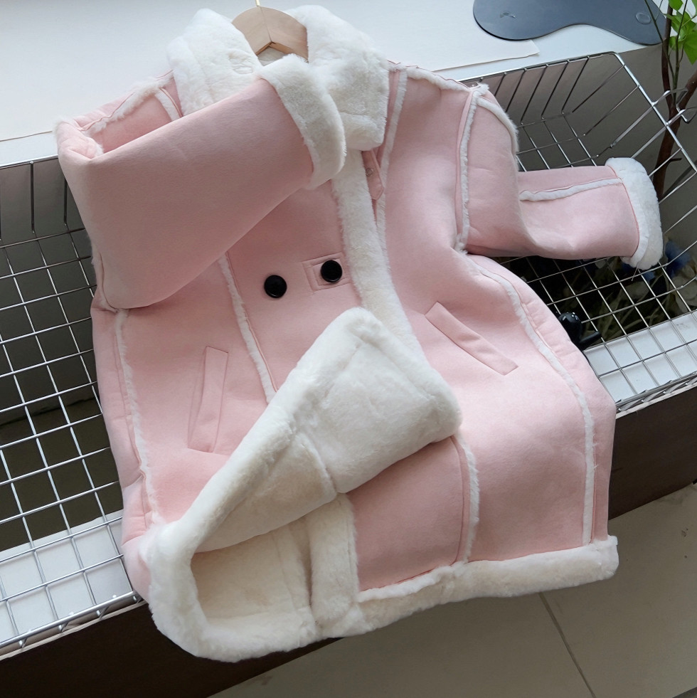 📚 儿童冬装仿皮草男童皮毛一体女童加厚外套麂皮绒毛毛衣棉衣中长款