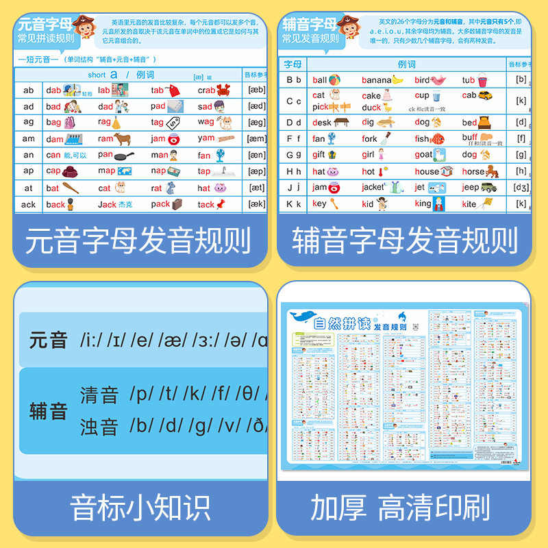 📚 小学英语自然拼读发音规则表音标教材教具玩具有声挂图学习神器