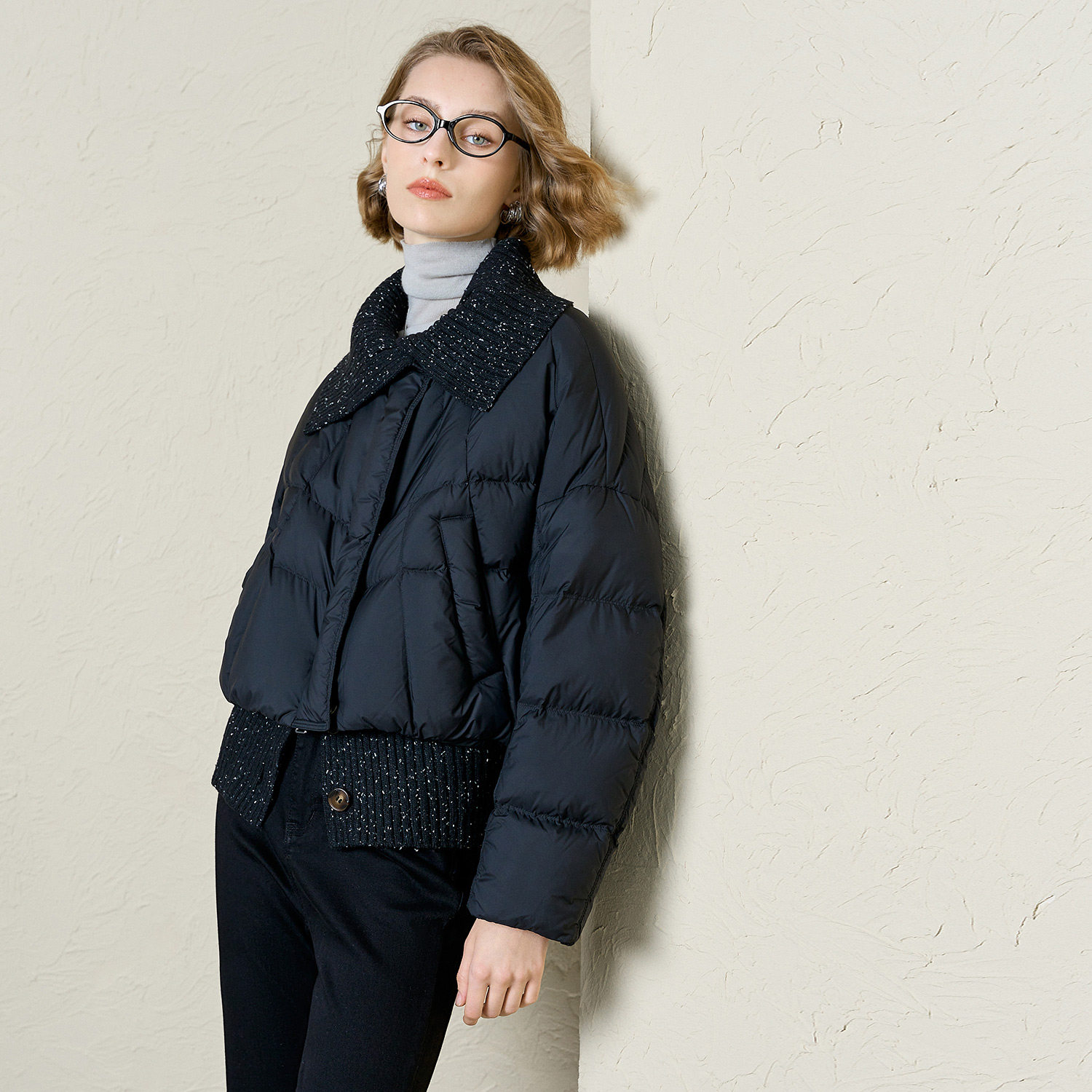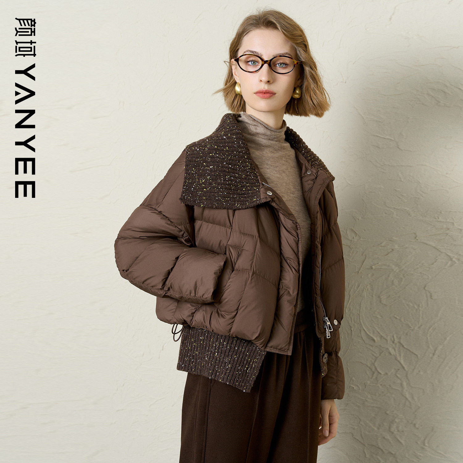 📚 颜域大翻领短款羽绒服2025新款冬季独特设计感修身显瘦鸭绒外套女