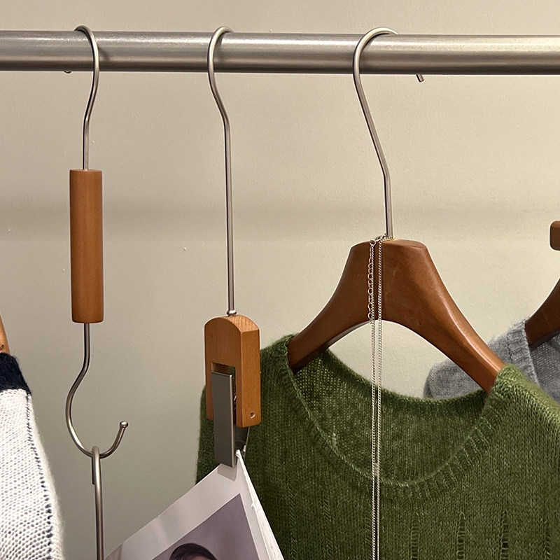📚 胡桃色服装店陈列神器影楼挂帽夹实木S钩木质鞋夹帽夹海报夹子