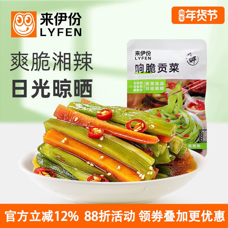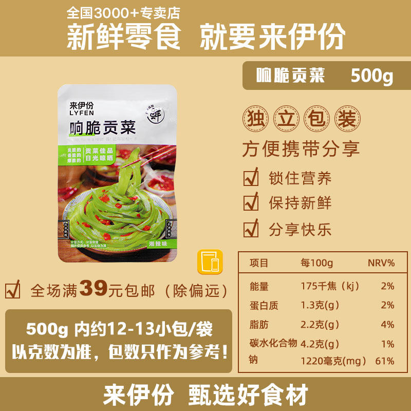 📚 来伊份响脆贡菜500g湘辣味下饭酒菜休闲零食解馋蔬菜干即食小包装
