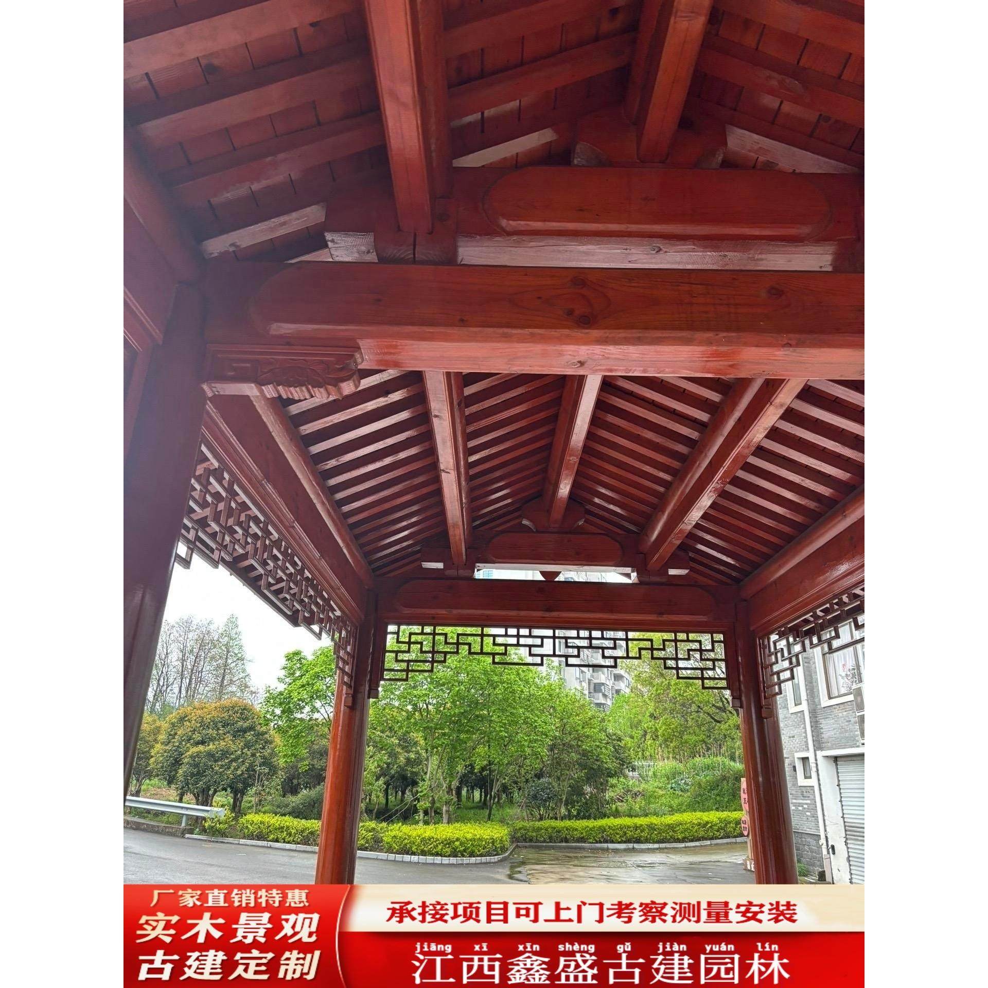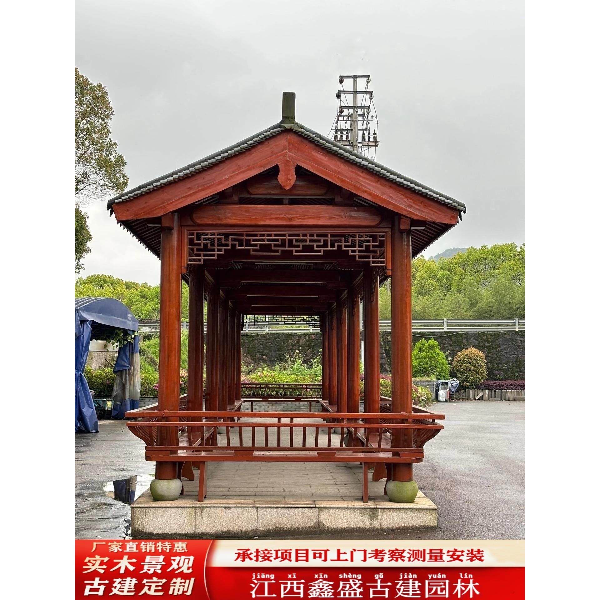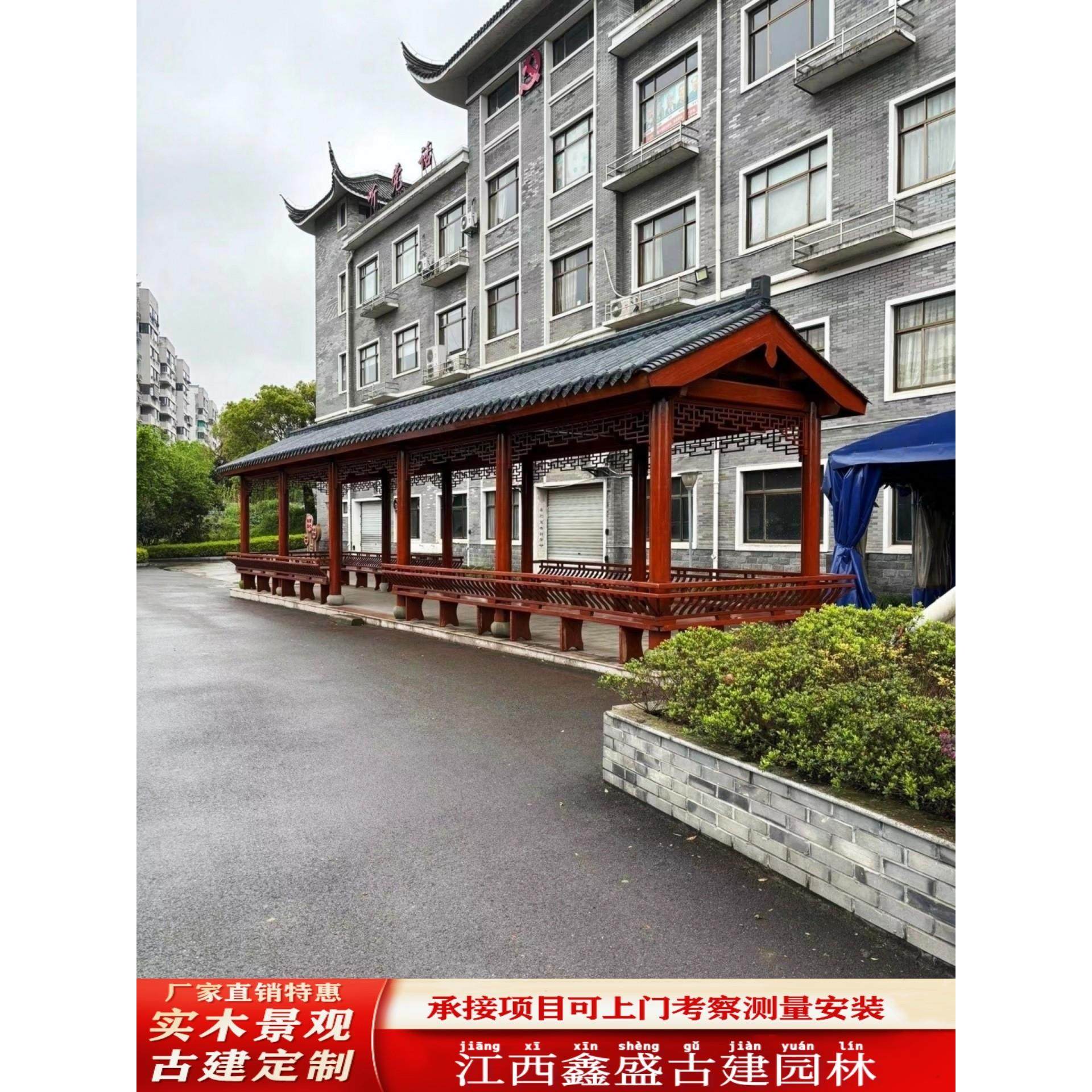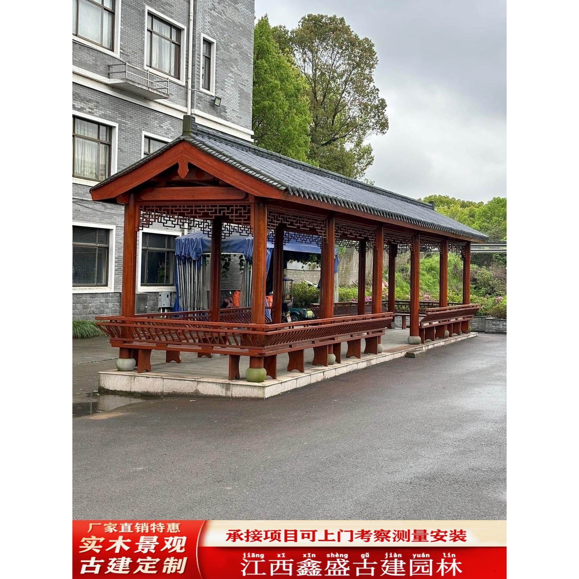 📚 青瓦古建筑廊道园林景观桥廊道凤梨纹风雨廊道庭院防腐木彷古水亭