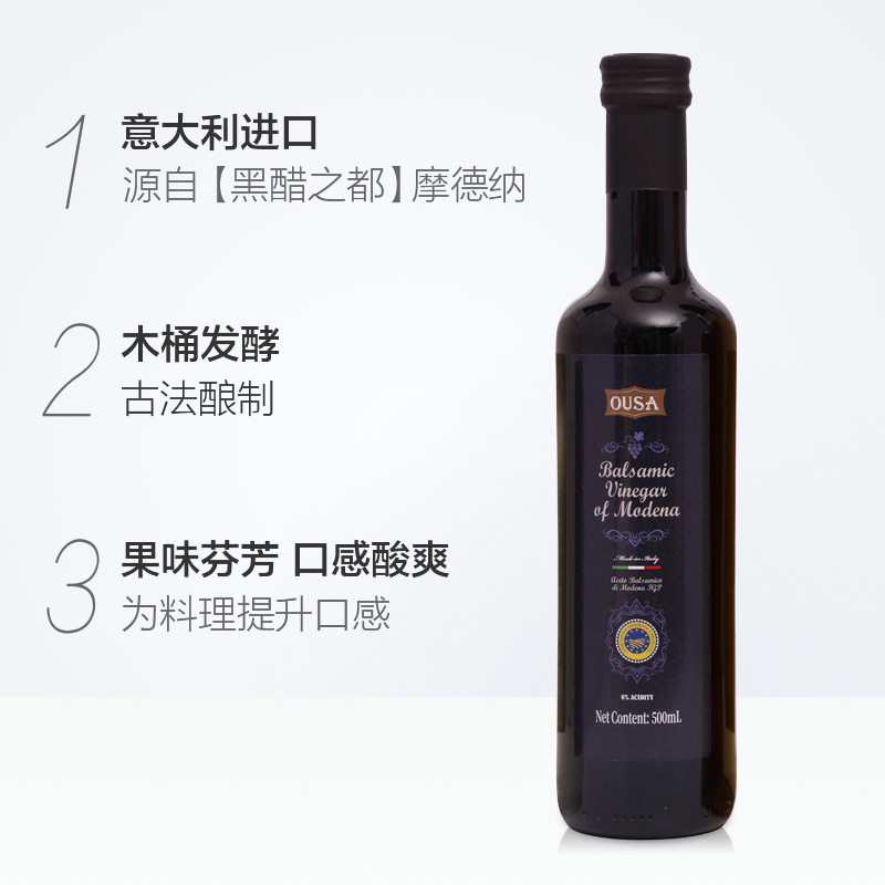 📚 意大利进口OUSA欧萨摩德纳黑醋500ml浓缩葡萄酒醋油醋汁沙拉
