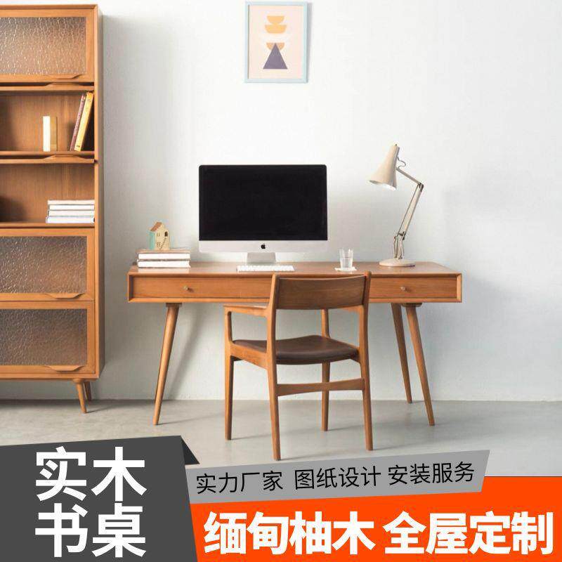 📚 现代缅甸柚木书桌手工打造书房家用卧室书桌坚固耐磨办公实木书桌