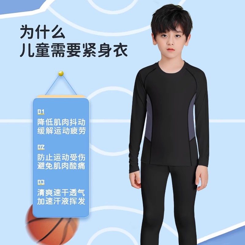 📚 儿童速干衣训练服运动套装男童篮球紧身衣足球打底裤春季健身体能