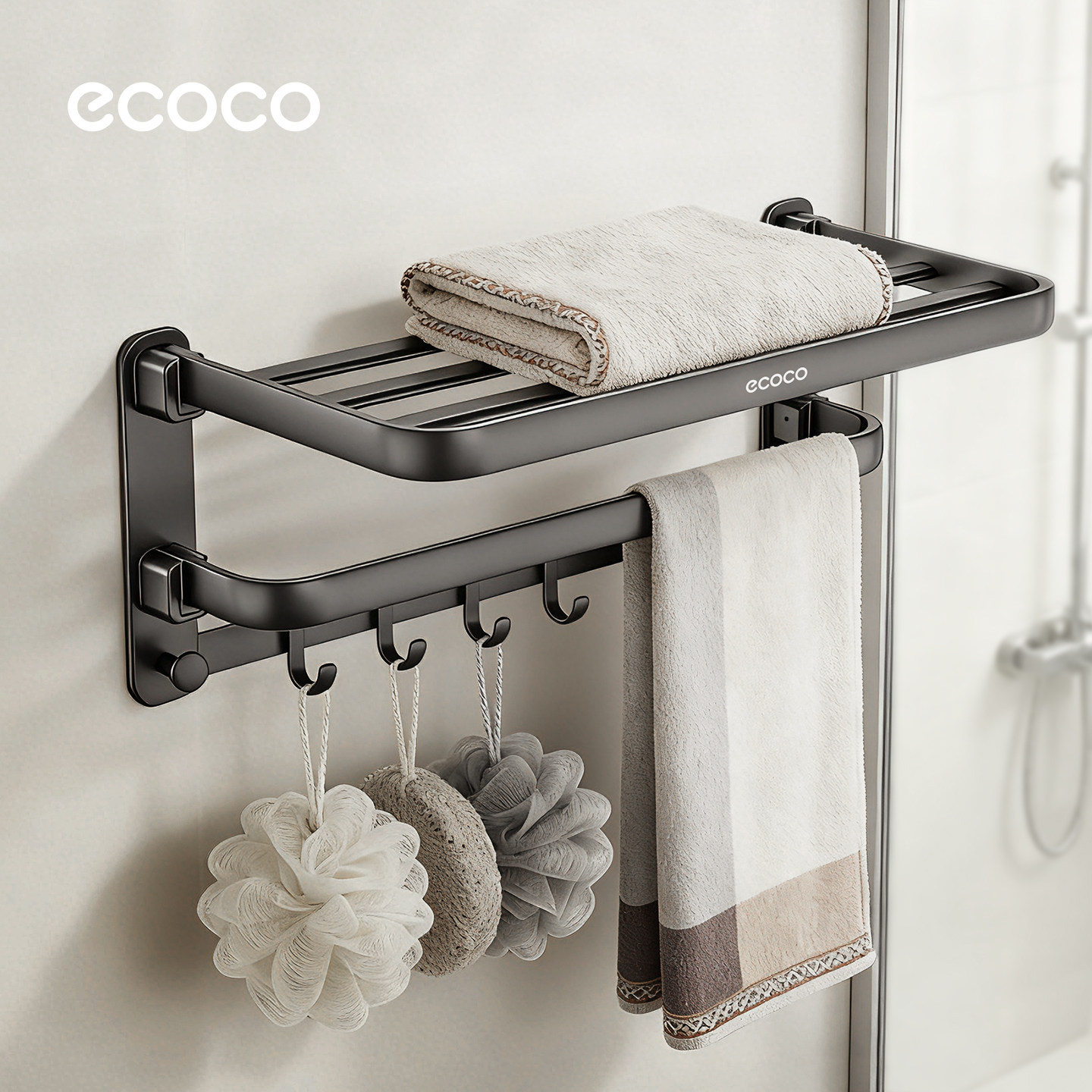 📚 ecoco卫生间浴巾架免打孔枪灰色浴室浴巾置物架厕所毛巾挂件套装