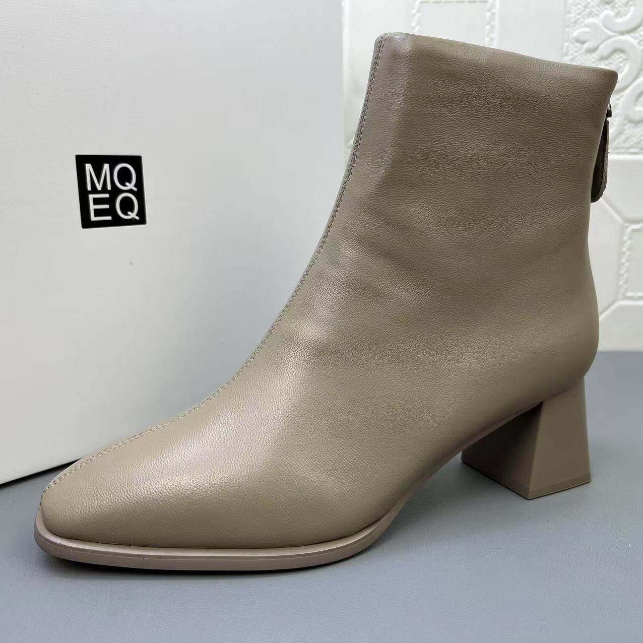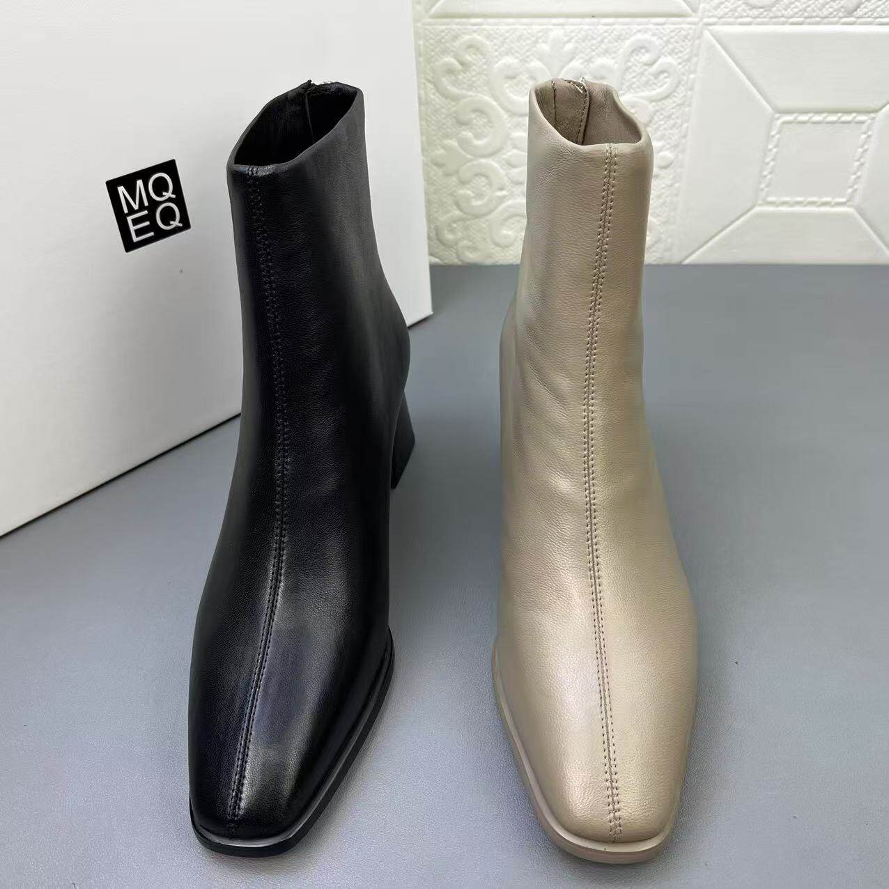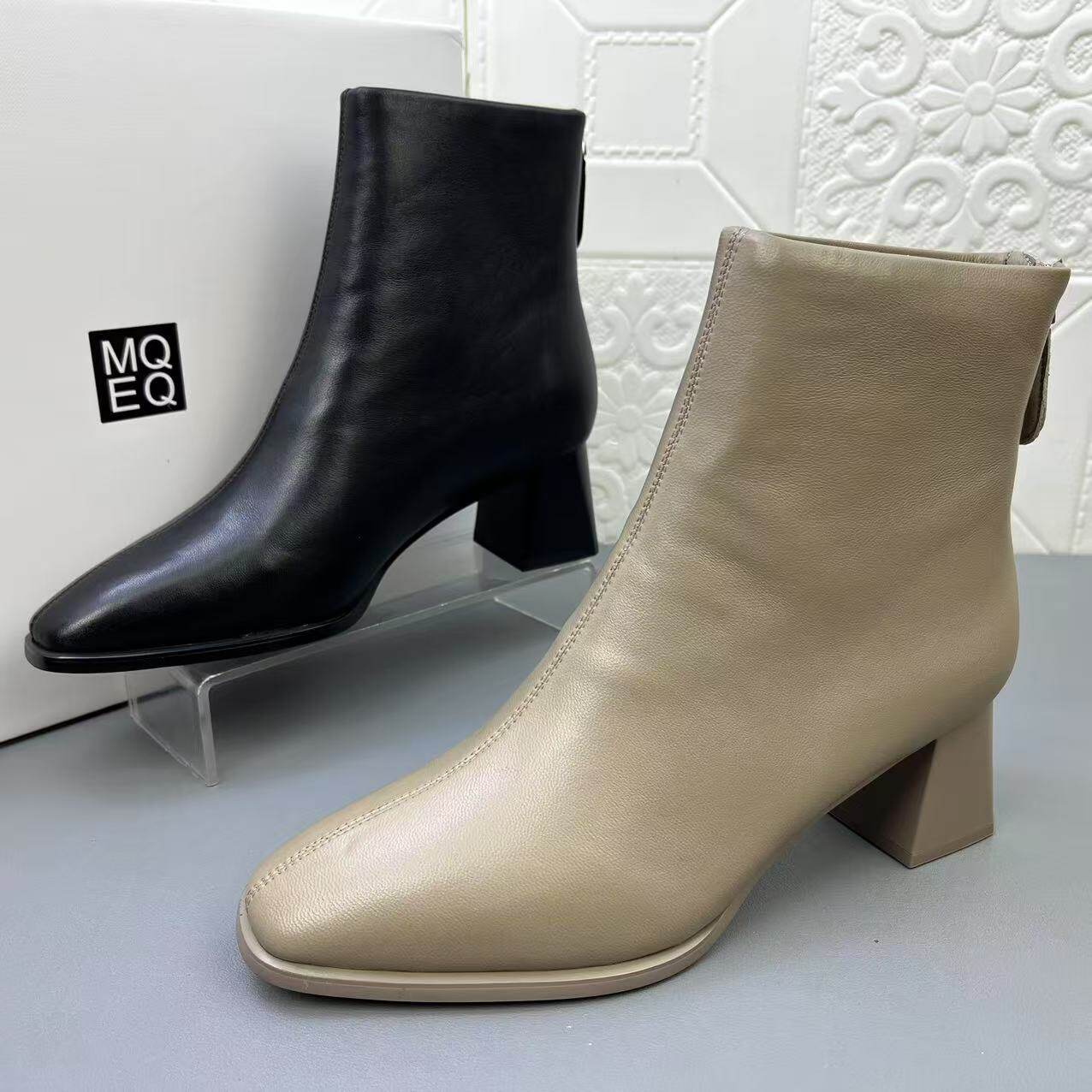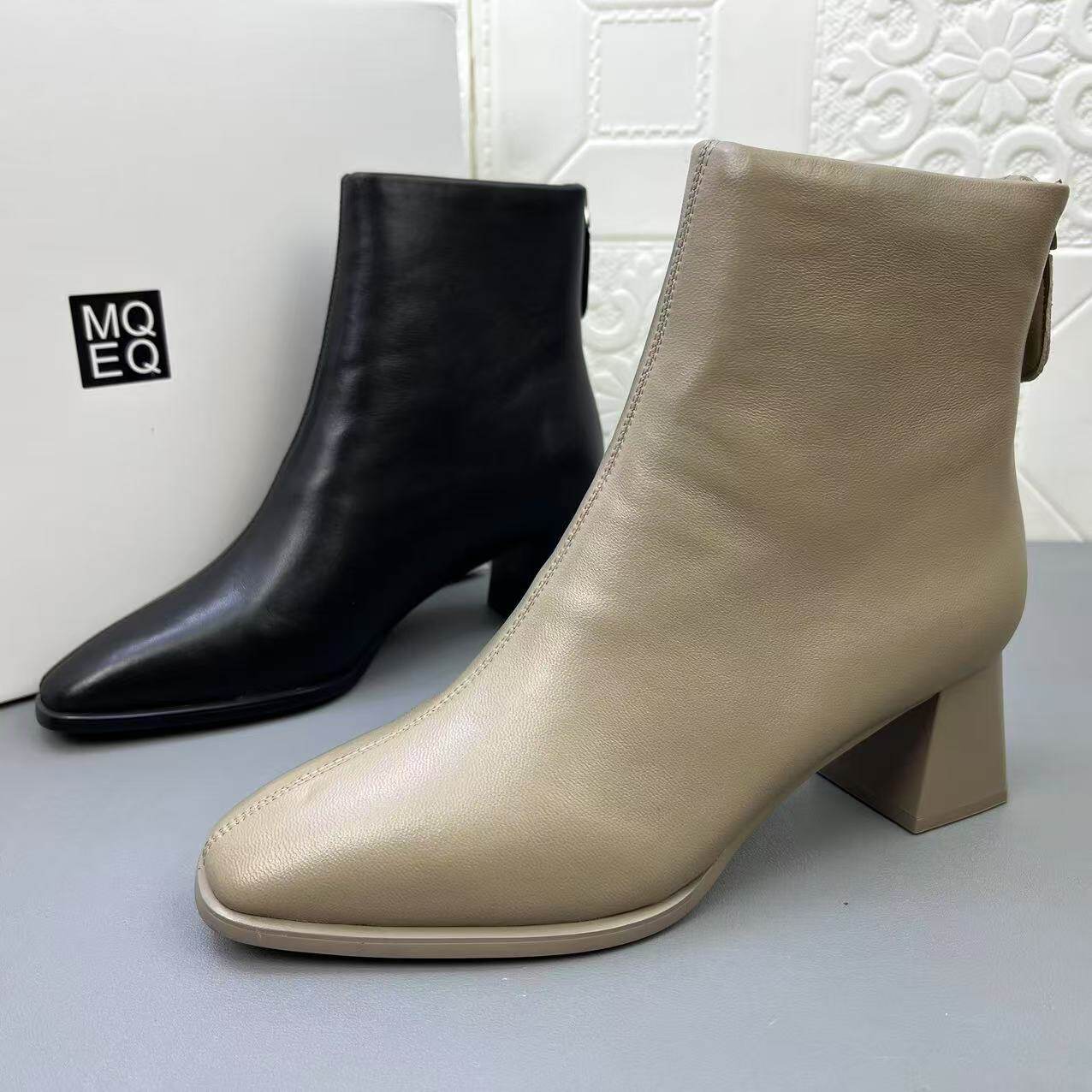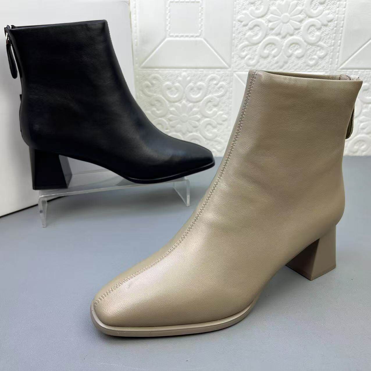 📚 意大利进口羊皮时装女靴瘦瘦靴里外全真皮冬季新款粗跟通勤短靴子
