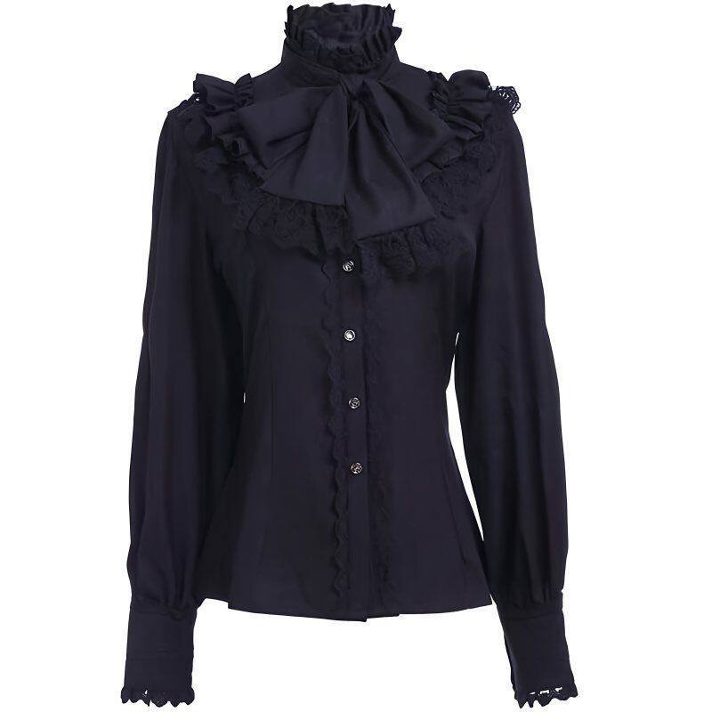 📚 中世纪Lolita衬衫哥特宫廷风欧美蒸汽朋克维多利亚女式褶皱上衣