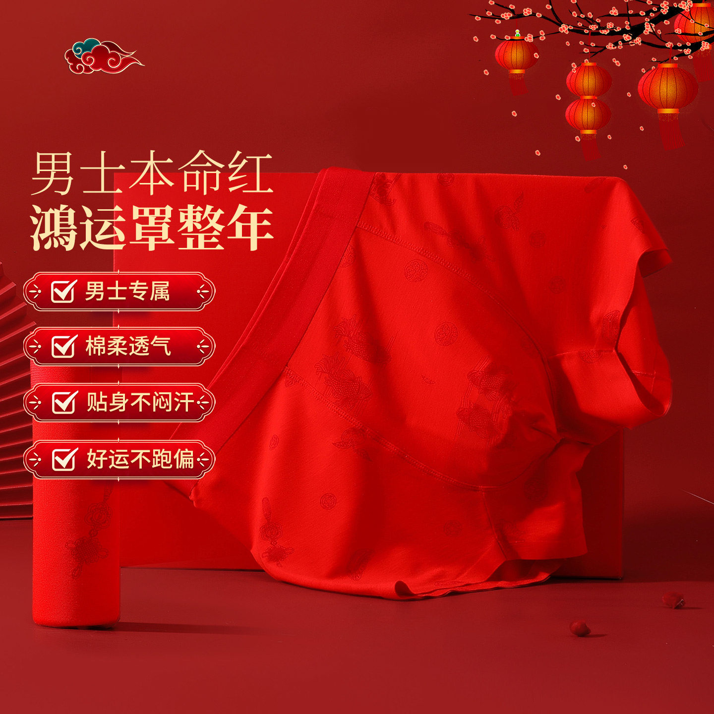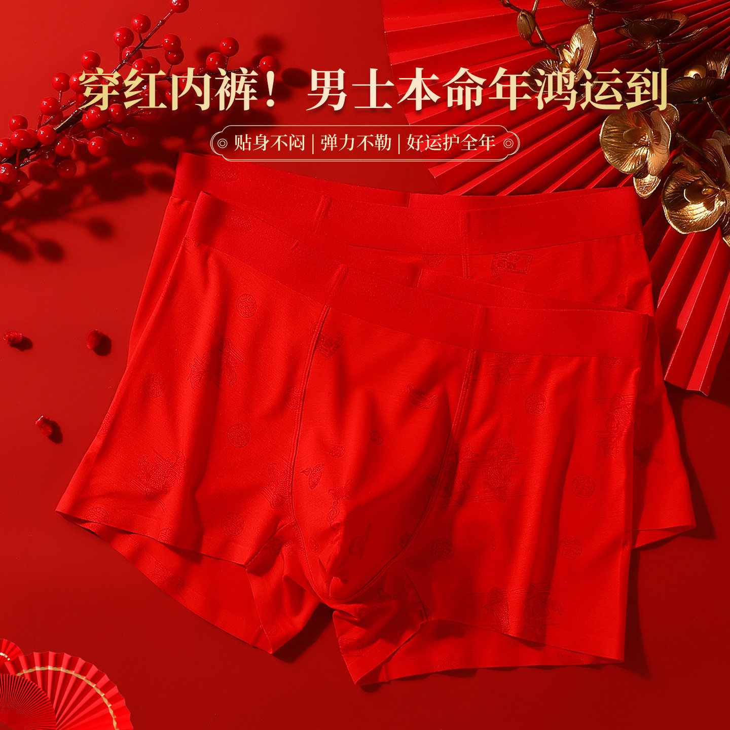 📚 古今结婚本命年男士内裤莫代尔红内裤男款男生礼物红色短裤平角裤