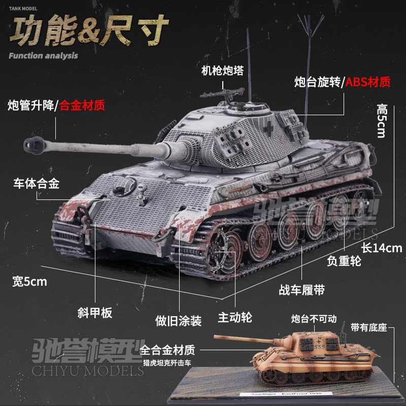 📚 虎王重型坦克1:72虎式坦克模型二战军迷合金模型做旧仿真收藏摆件