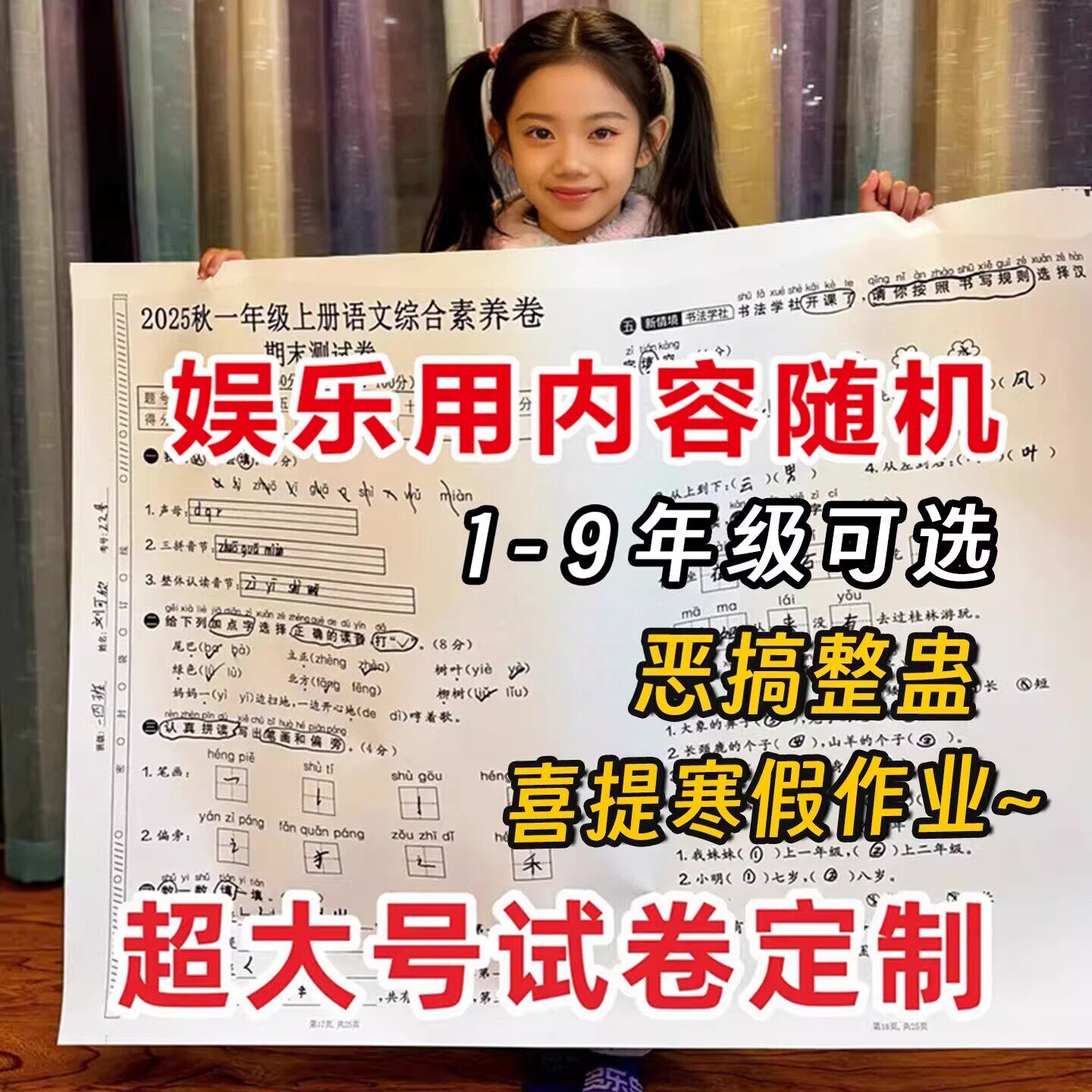 📚 一年级超大试卷二年级三年级小学生四年级五年级儿童六年级特大号教学标本同款练习卷子寒假作业打印定制整蛊