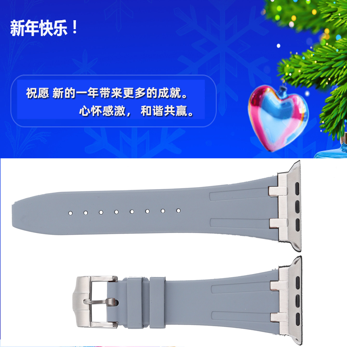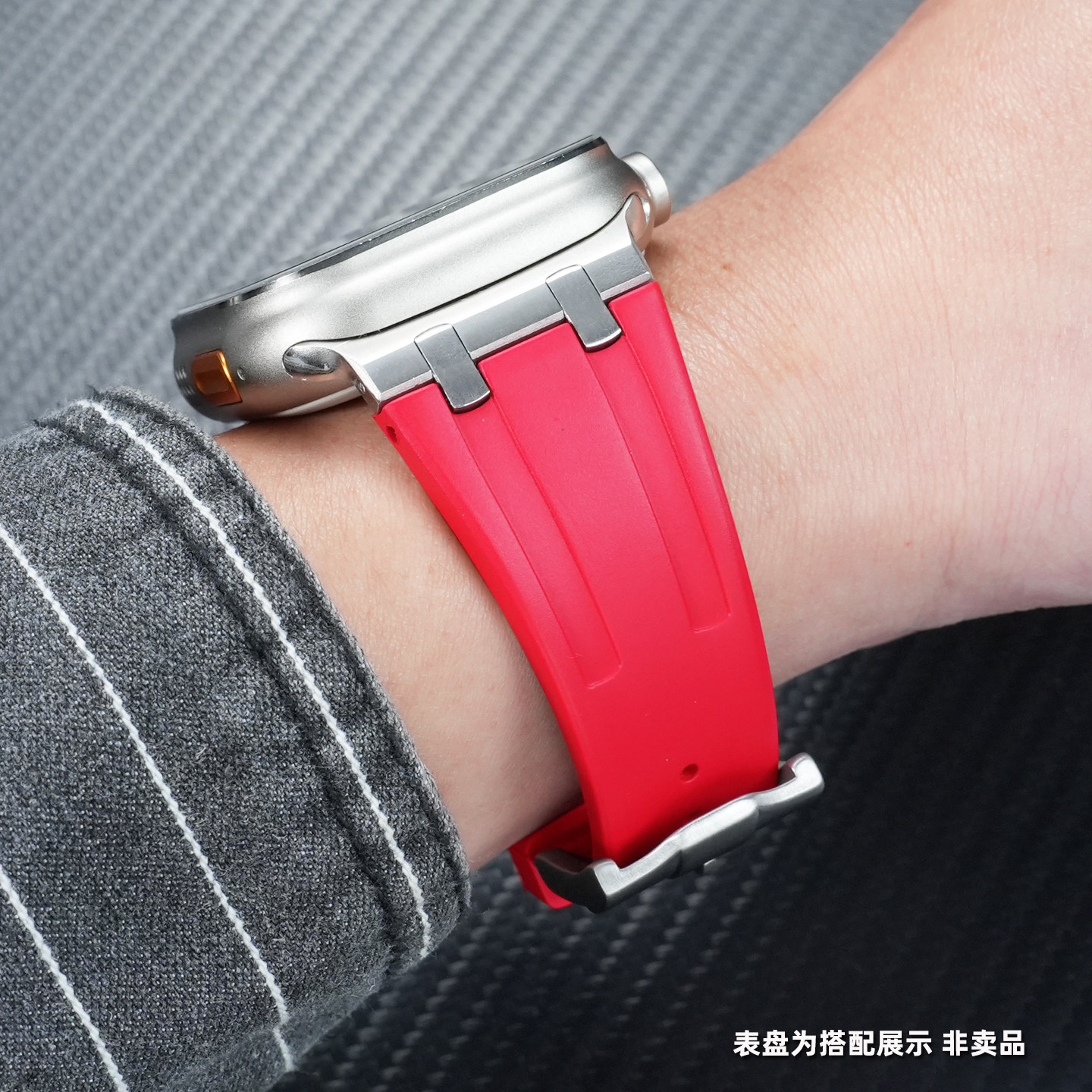 📚 【元旦新年款】新年红氟橡胶手表带 适用苹果ultra3手表带s11AP皇家橡树表带applewatchs10/9/8/7男智能49mm