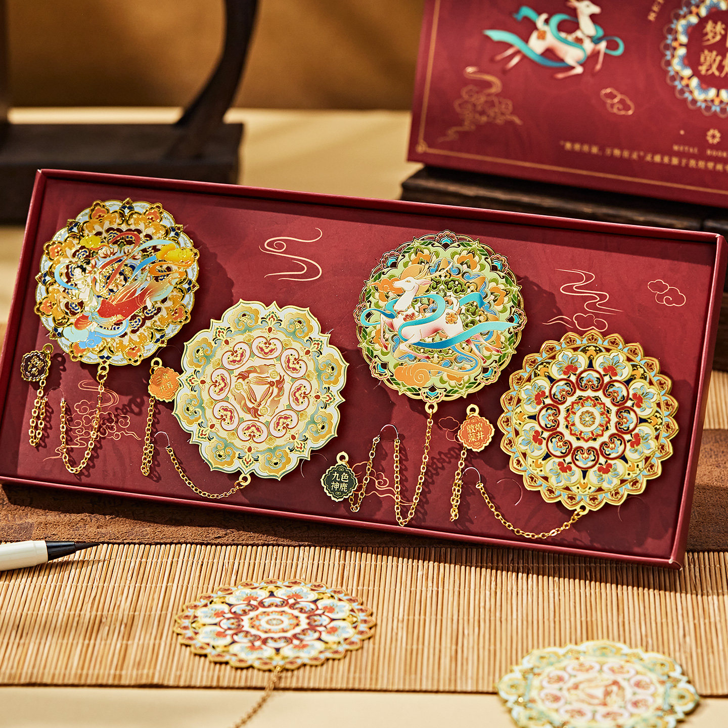 📚 梦回敦煌九色鹿壁画莫高窟藻井飞天文创吊坠书签古典中国风高档精致故宫文创博物院甘肃旅游纪念品送国外友人