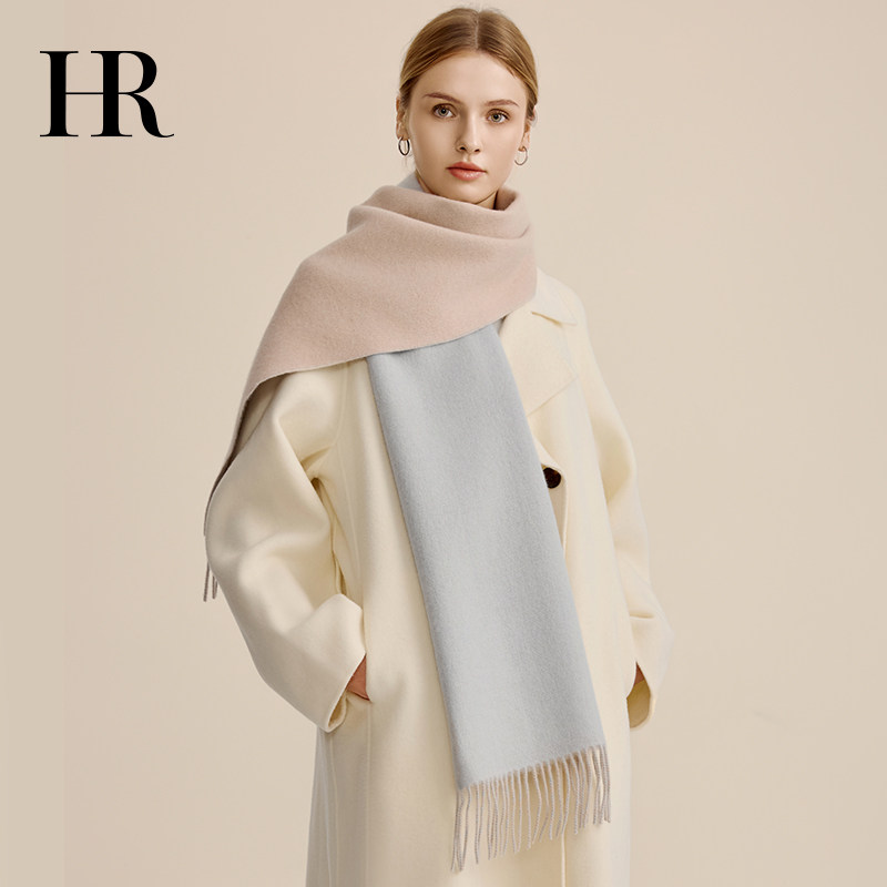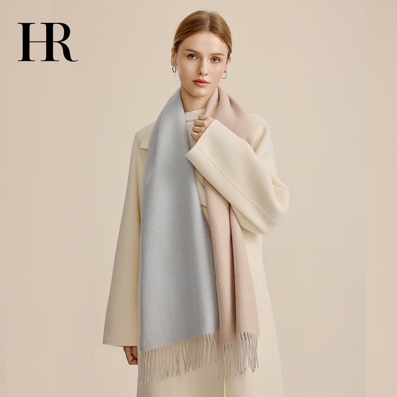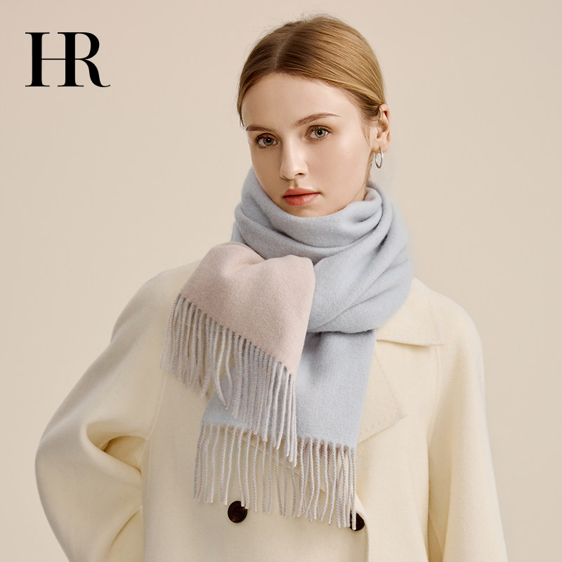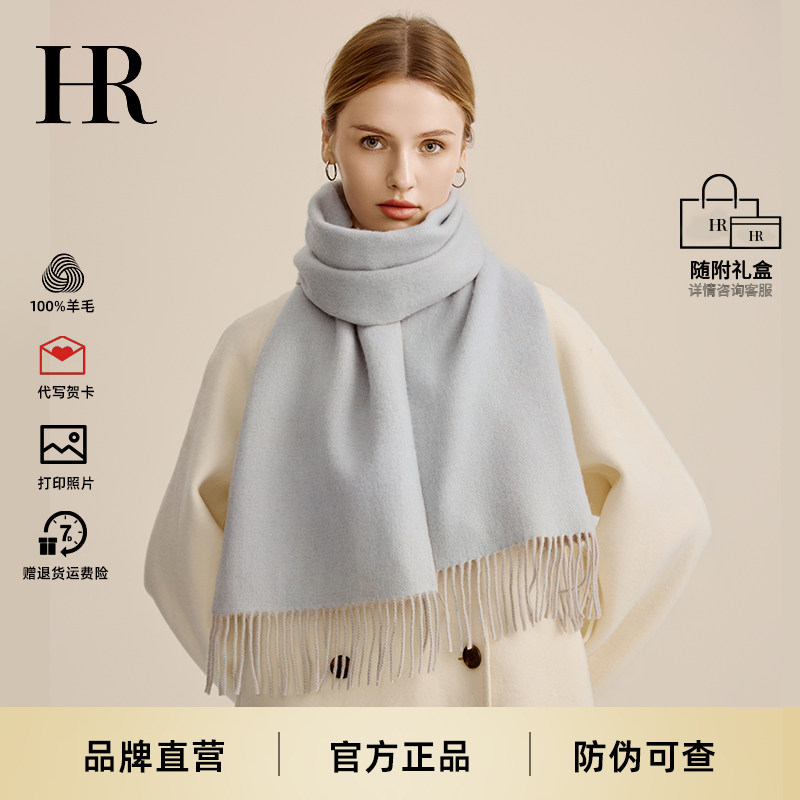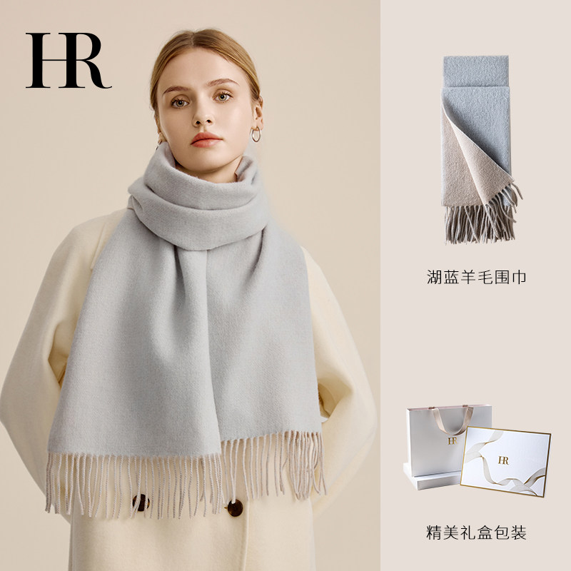 📚 HR赫莲娜纯羊毛蓝色围巾外搭女2025新款秋冬季围脖送女友生日礼物