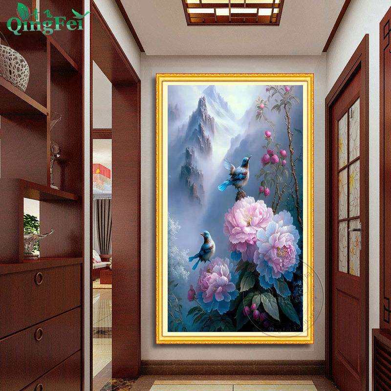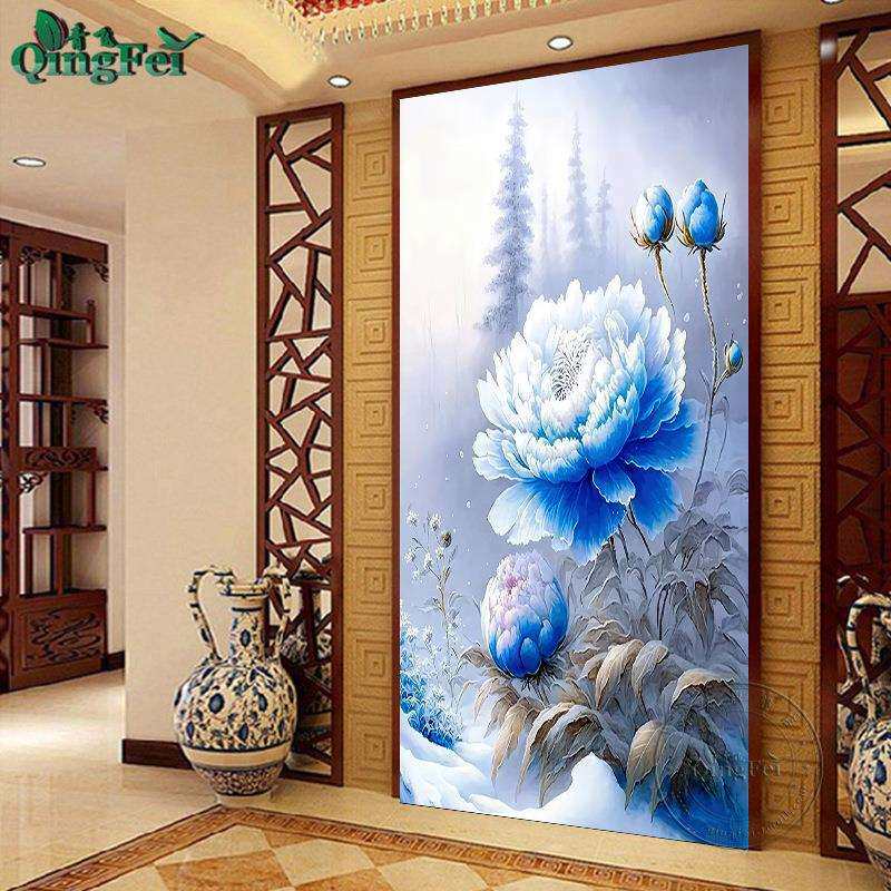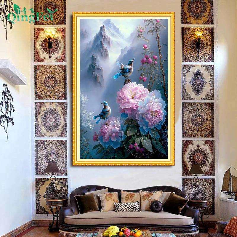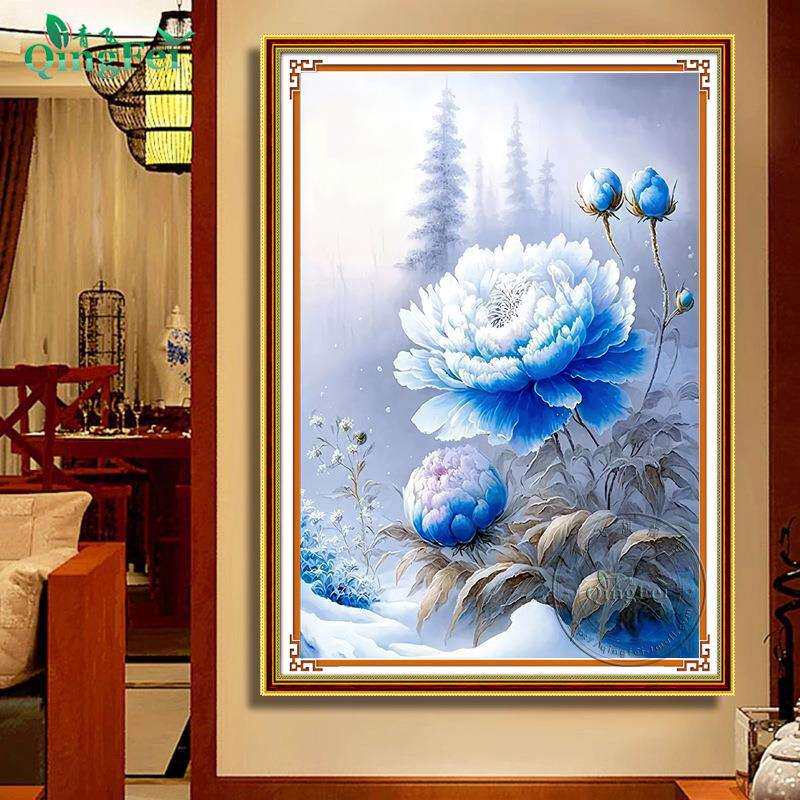 📚 青飞精准印布雪景蓝牡丹十字绣喜上枝头喜鹊新中式玄关越南柬埔寨
