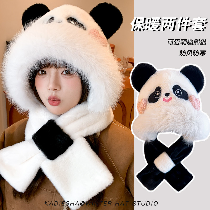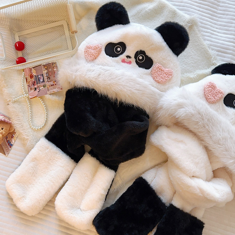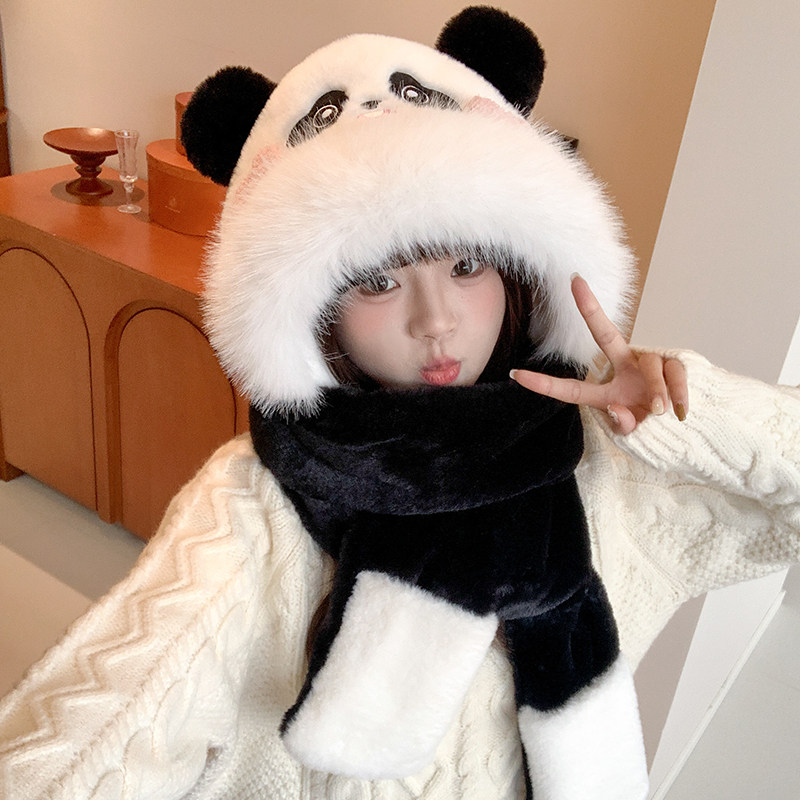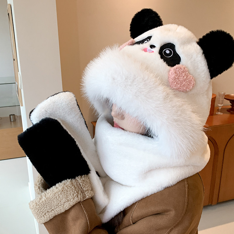 💓"冬日温暖神器!可爱熊猫毛绒帽子围巾手套一体连帽女骑行雷锋帽,券后价35元,让你爱不释手!"
