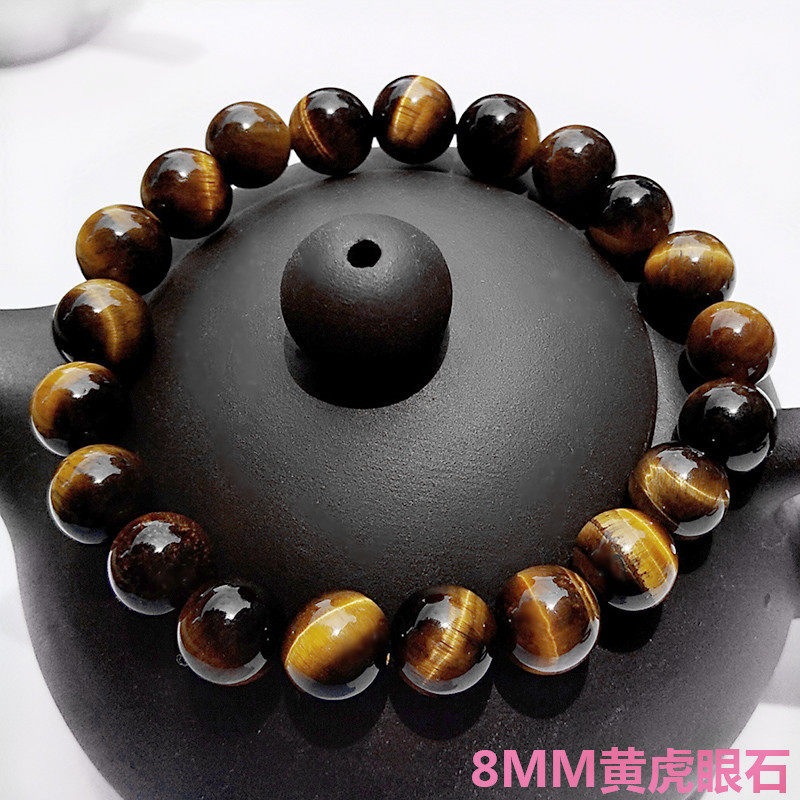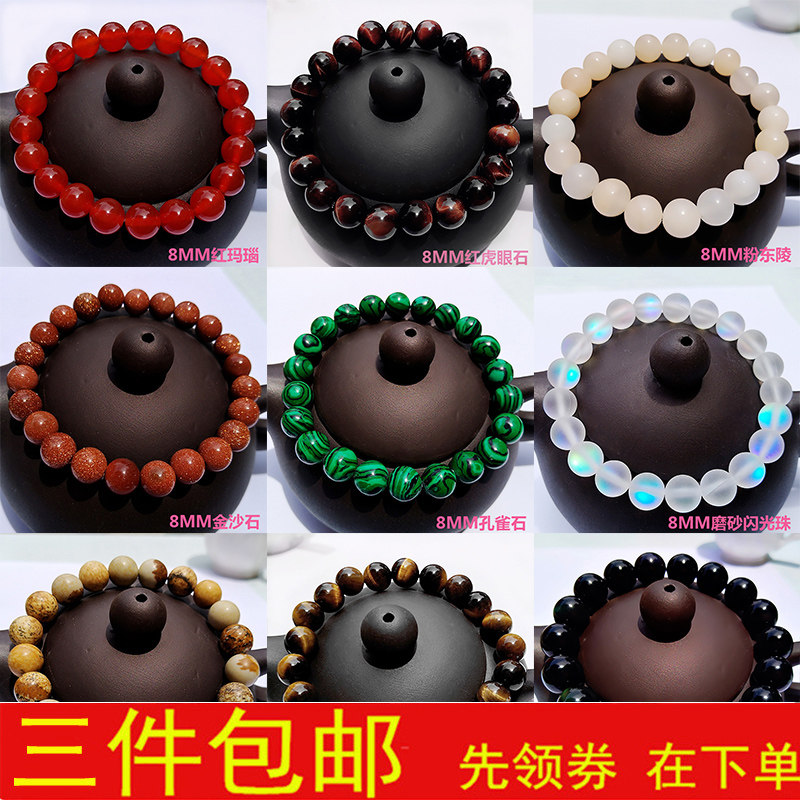 📚 天然石水晶手链黑曜石虎眼石金沙石闪光石图画石红玛瑙单圈手串女