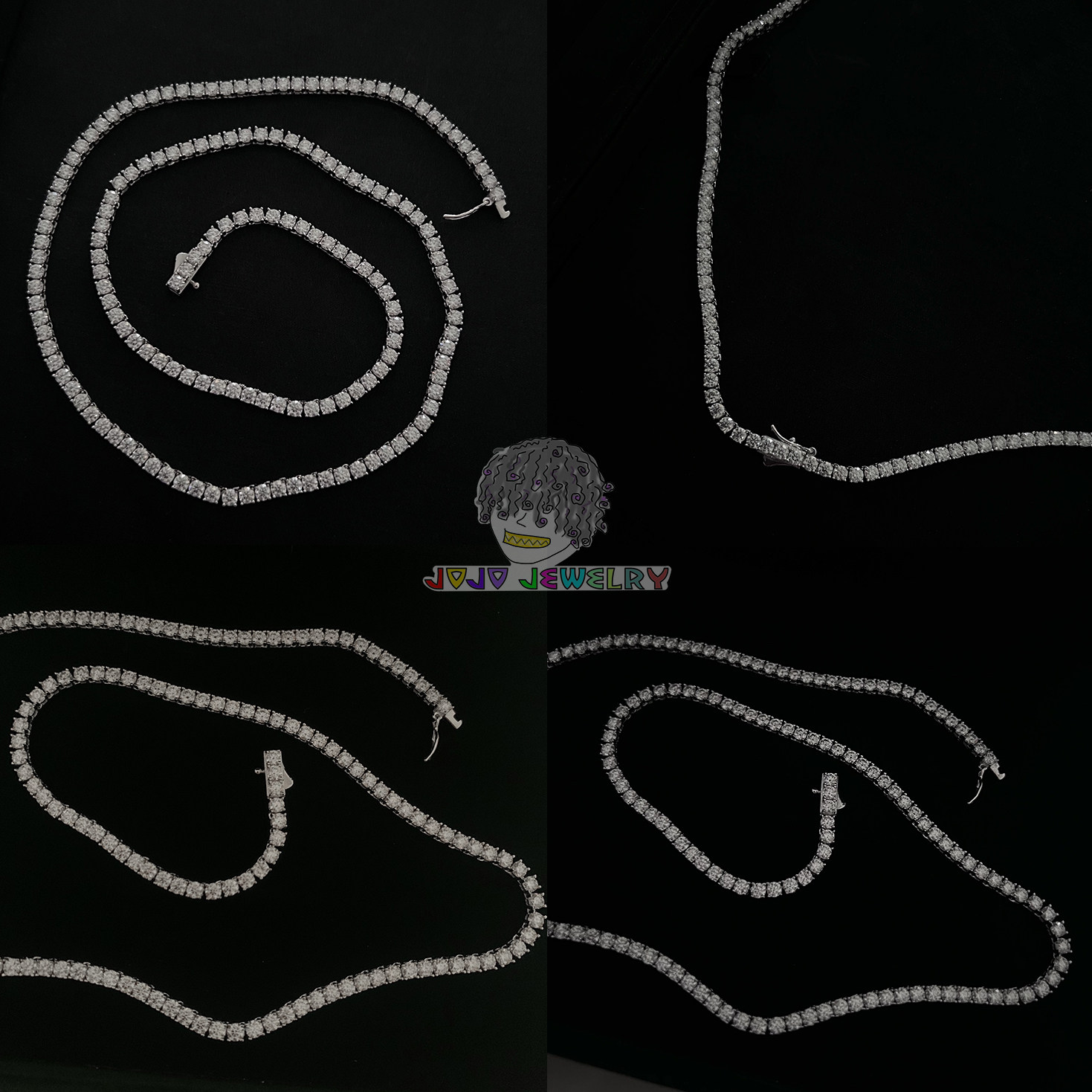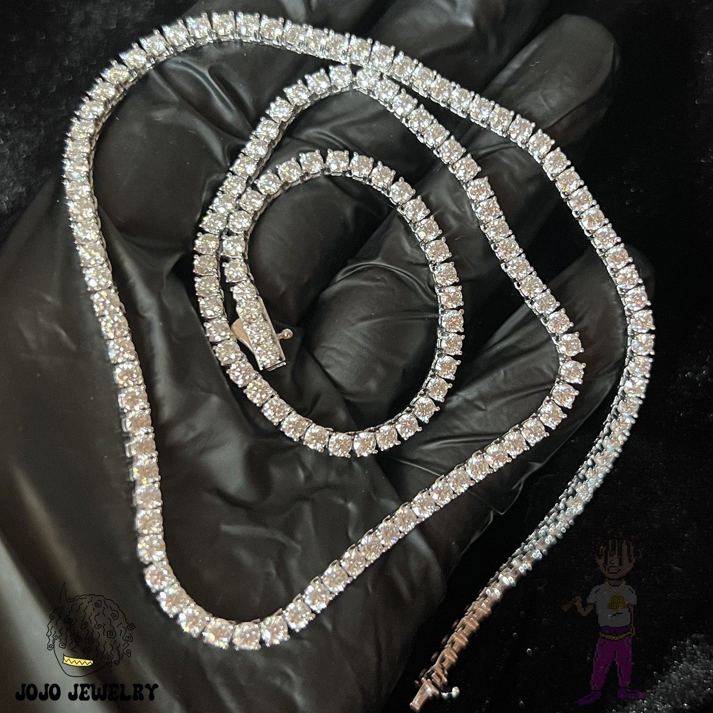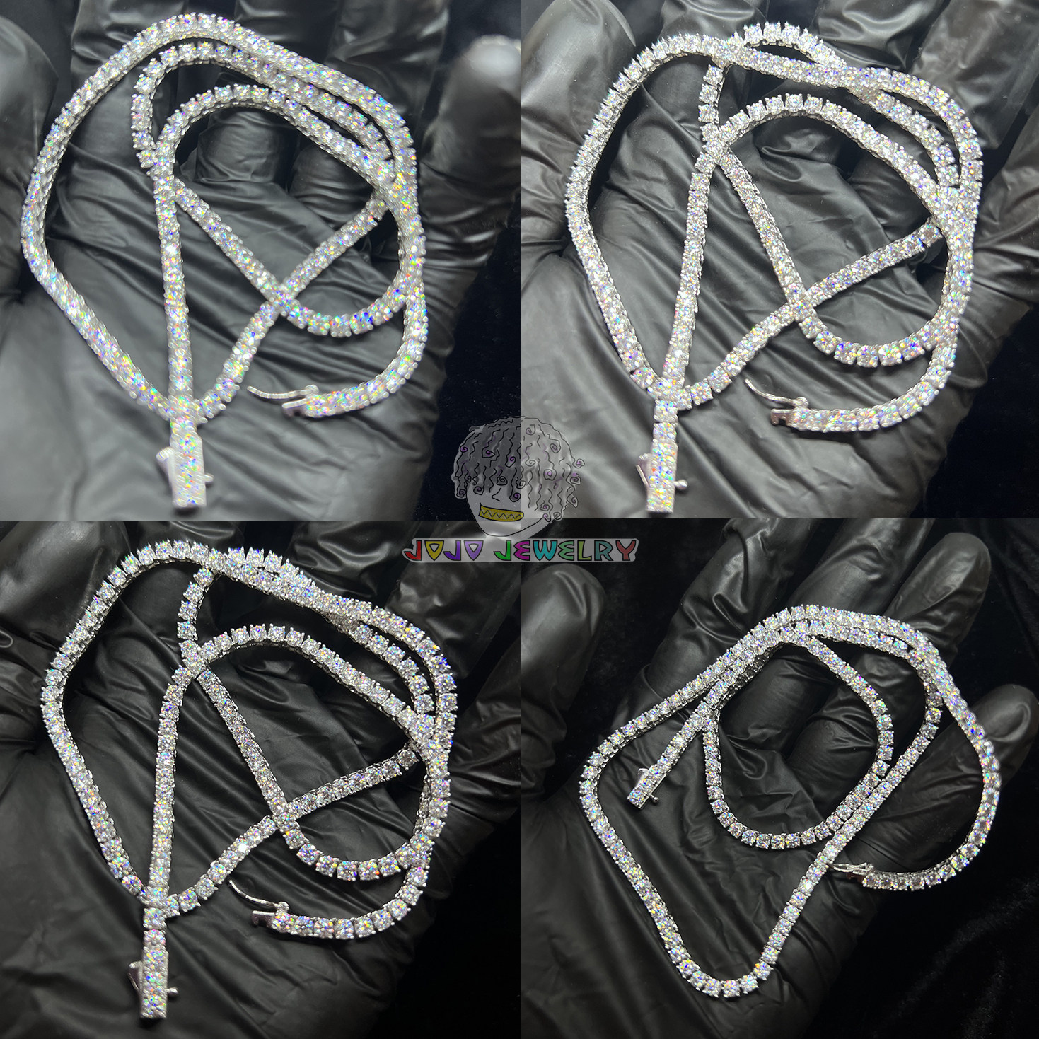 📚 3mm S925银 Moissanite Tennis网球链莫桑石镶嵌闪钻项链弹簧双扣
