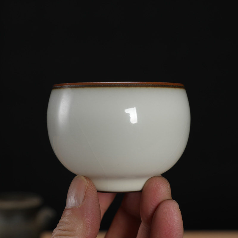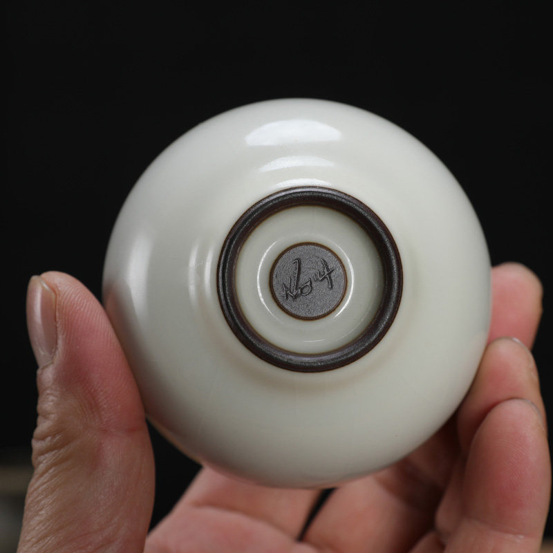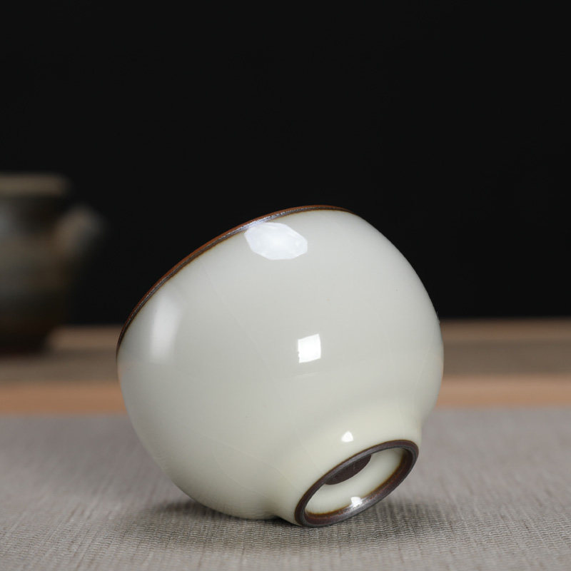 📚 龙泉市青瓷龚炳明手工茶杯功夫茶具大号哥窑铁胎蛋白釉主人杯捧杯