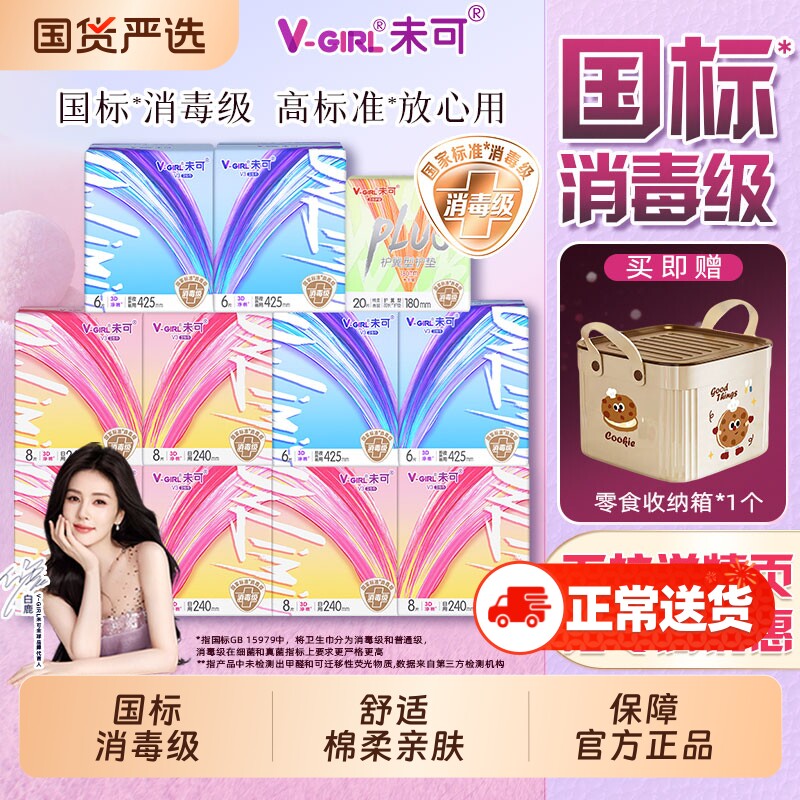 💕“V-GIRL未可消毒级卫生巾:白鹿同款日用夜用整箱装,好物控诉券后价12!💓”