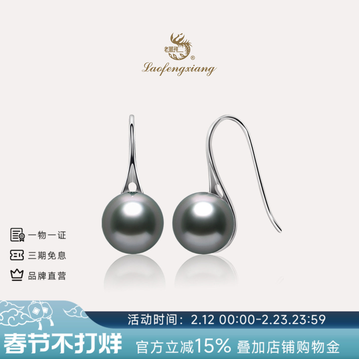 📚 老凤祥大溪地黑珍珠耳饰海水珍珠耳环轻奢高级感耳钩珠宝官方正品