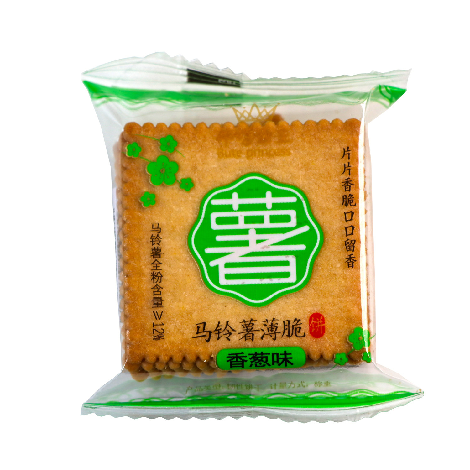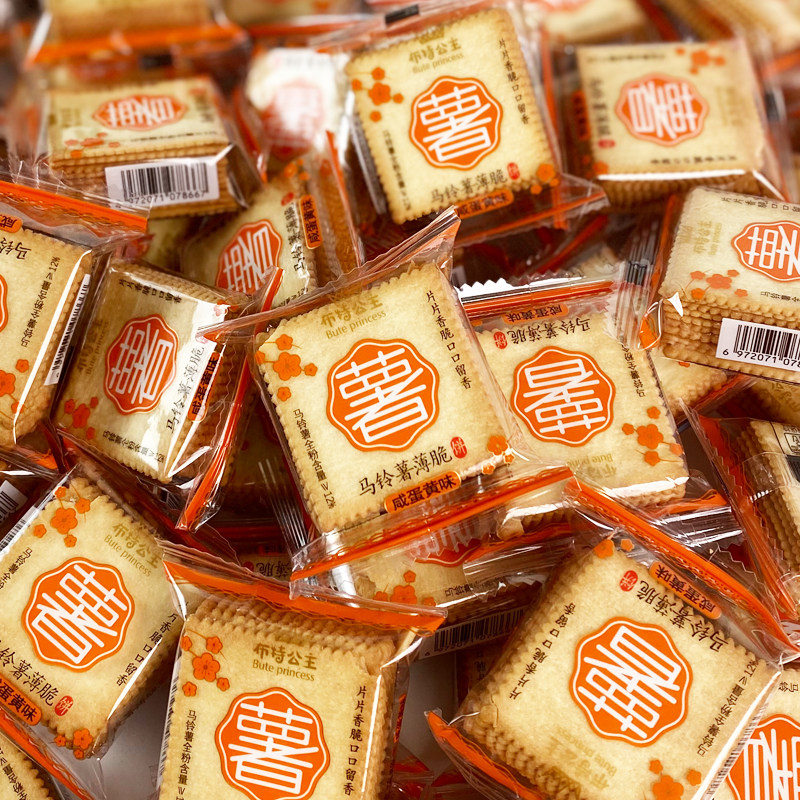 📚 布特公主马铃薯薄脆饼干香葱味超薄散装零食迷你正方形酥脆小薄饼