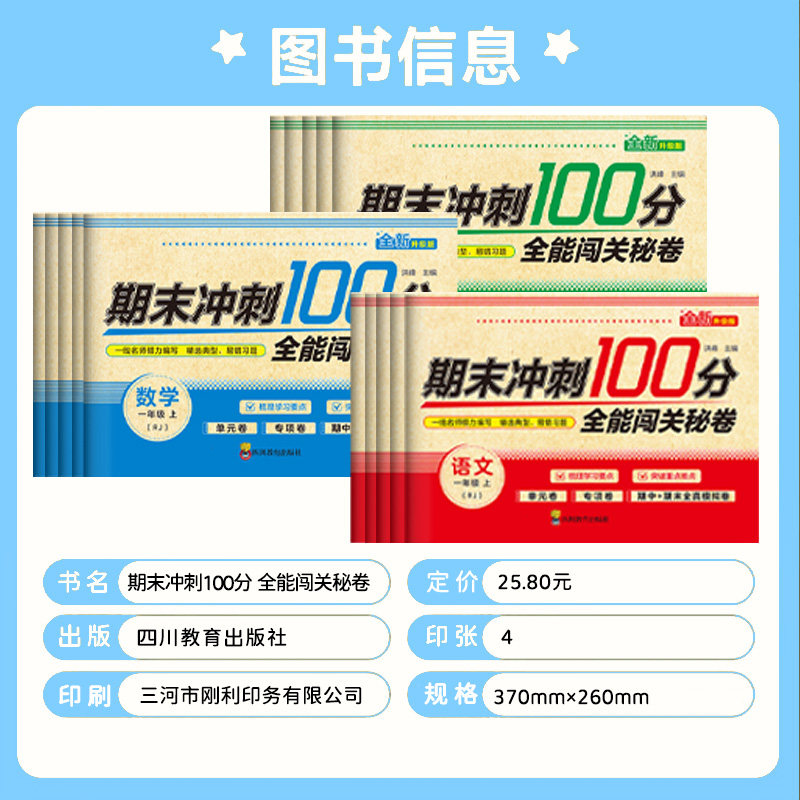 📚 期末冲刺100分试卷一百分一年级上册二年级三四五六年级上册语文数学试卷测试卷全套同步练习册人教版同步训练一课一练黄岗试卷