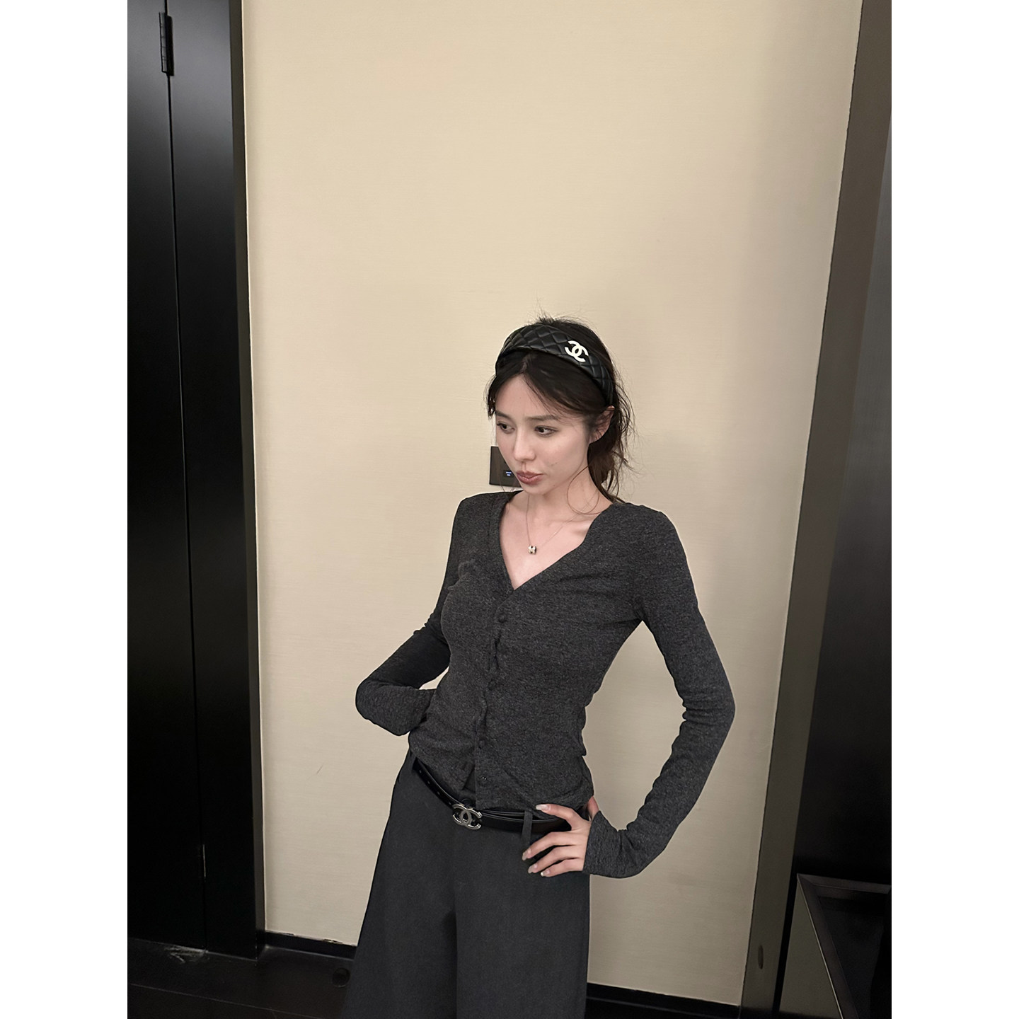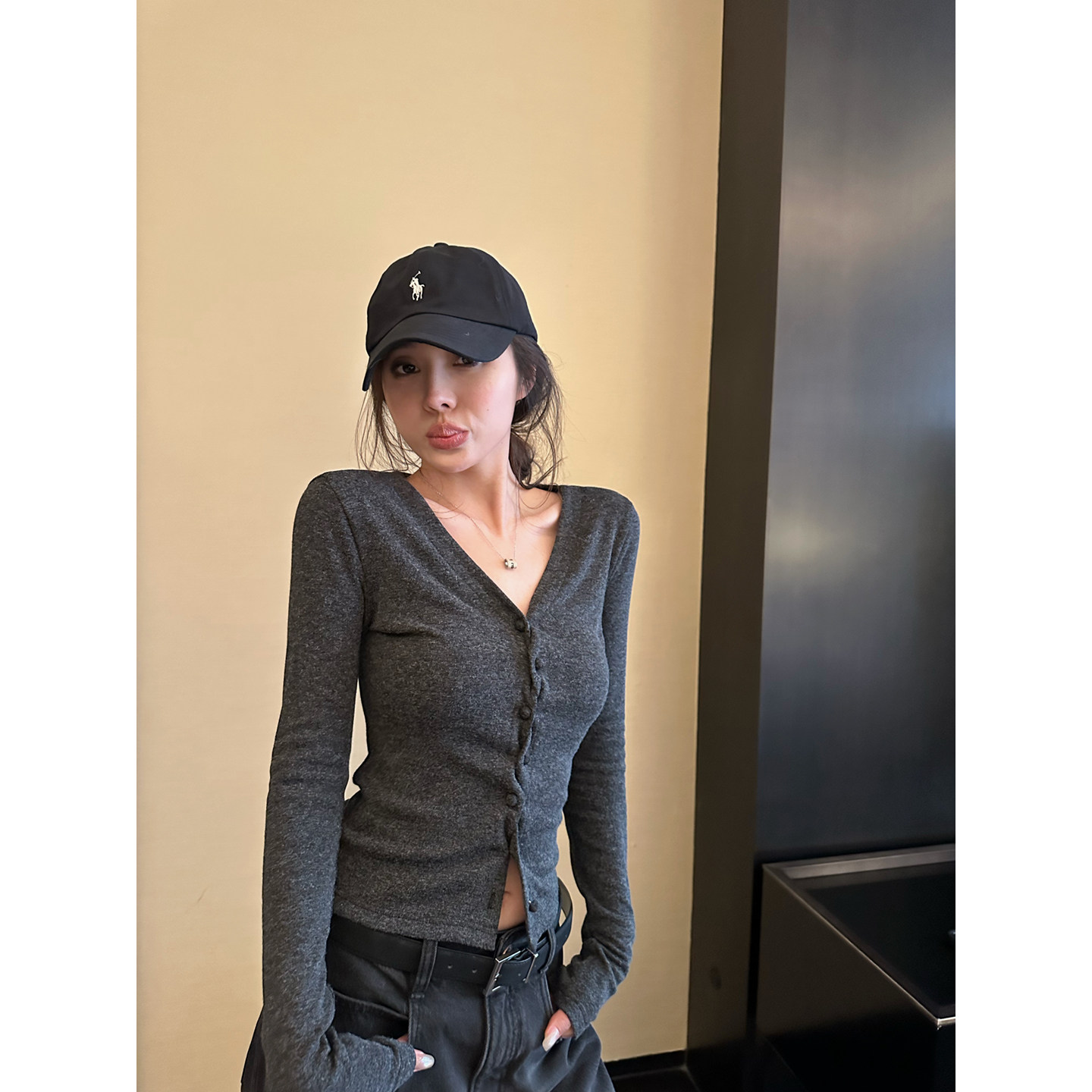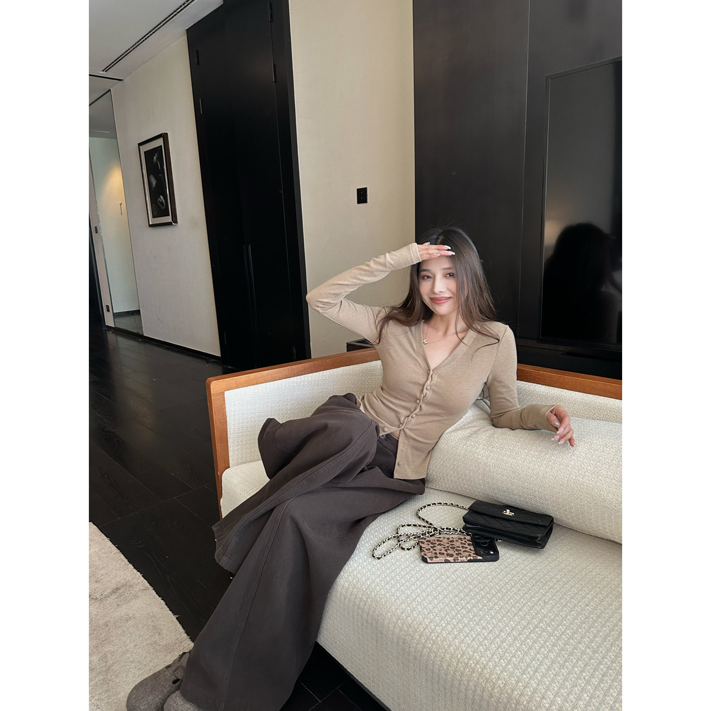 📚 NanaByNana【圣特庄园】多色对扣长袖针织开衫女冬v领打底衫上衣