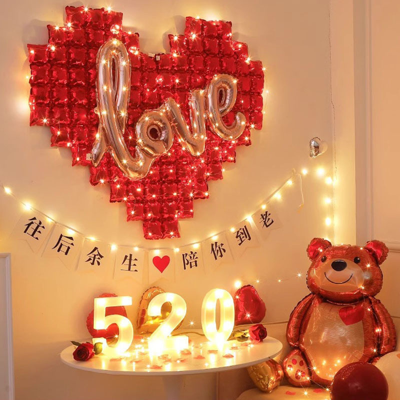 📚 七夕情人节场景布置装饰大号爱心铝膜气球红色生日求婚表白汽球