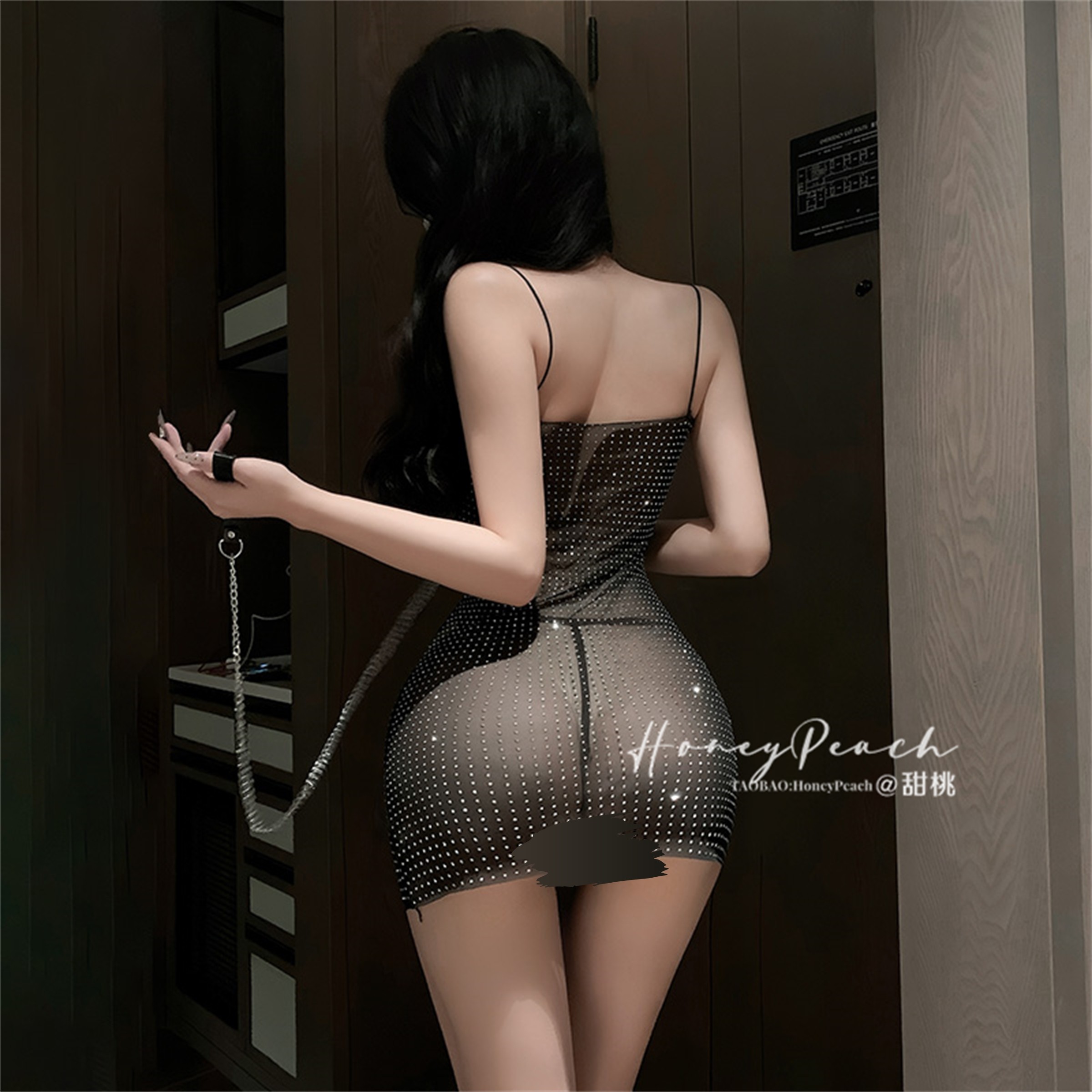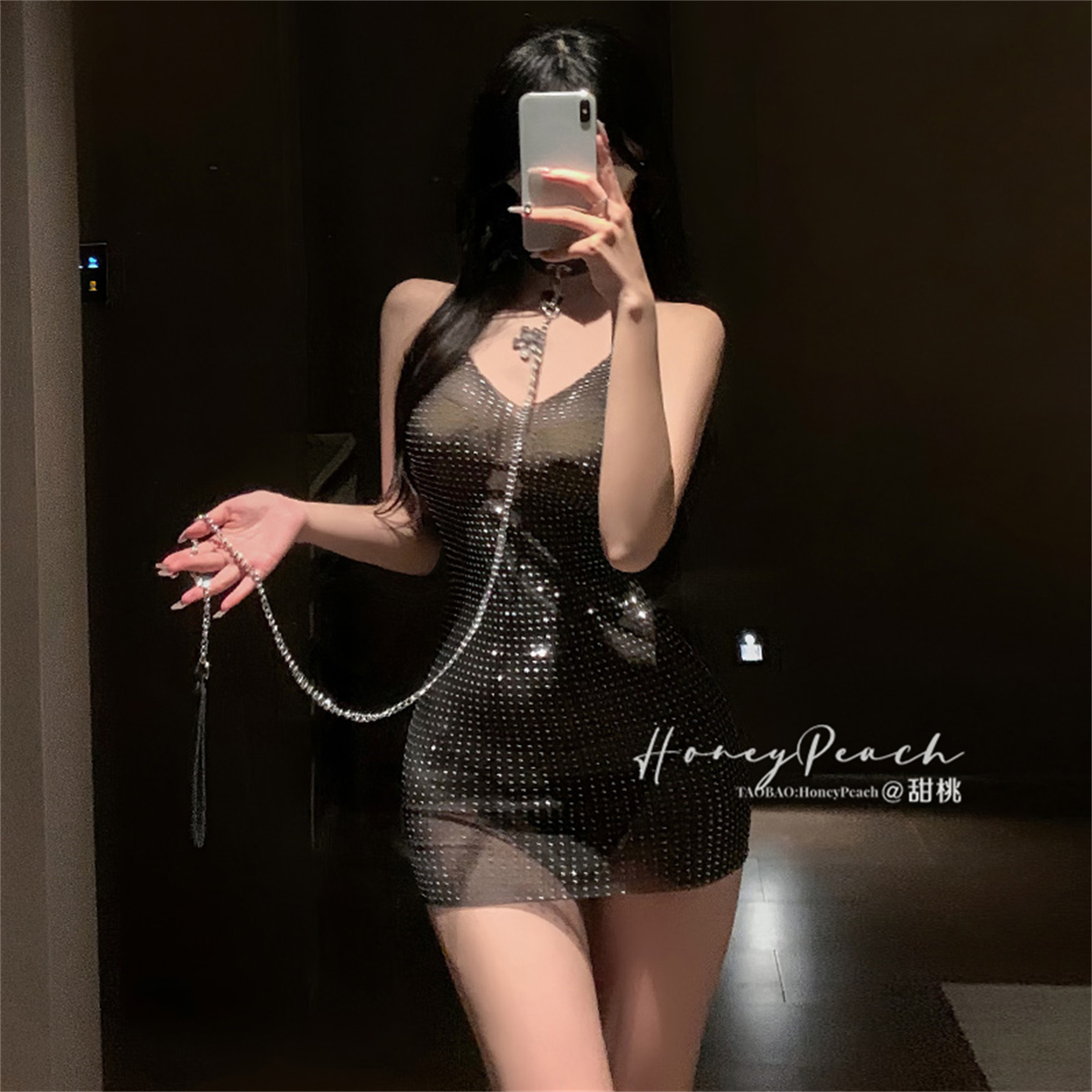 📚 HP:独特绝美*连衣裙性感v领低胸吊带裙重工烫钻收腰修身包臀短裙